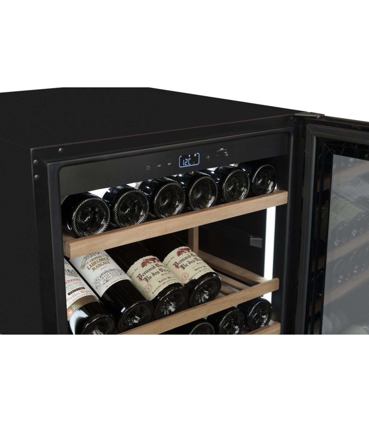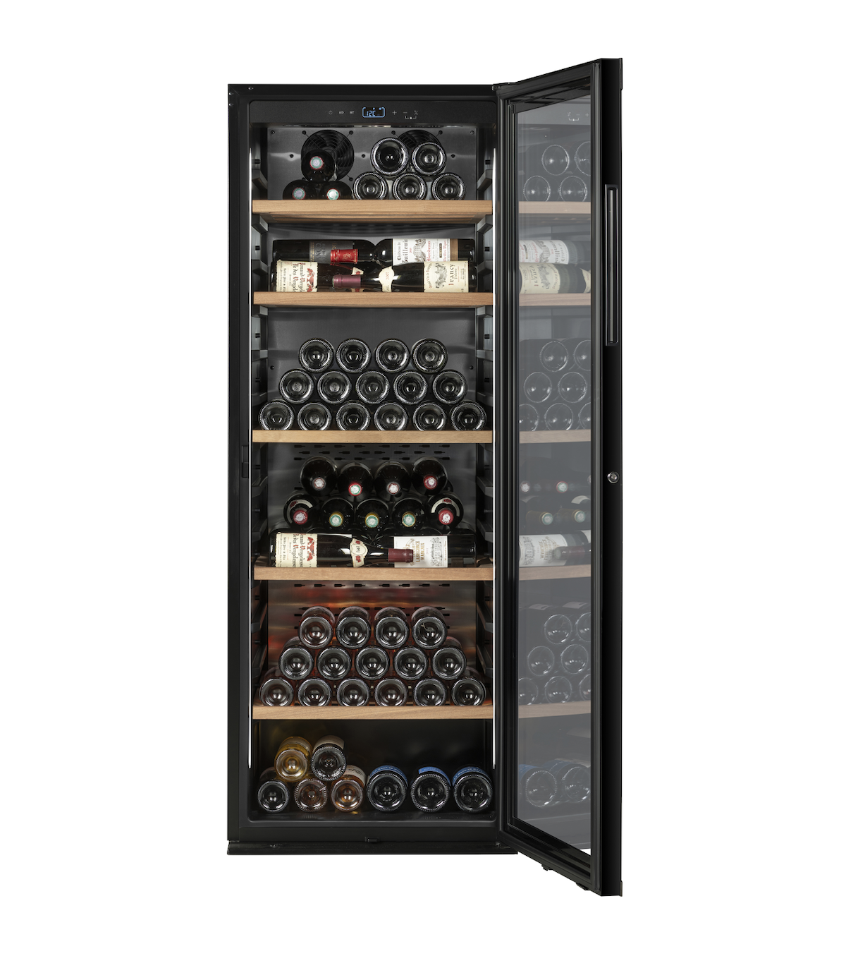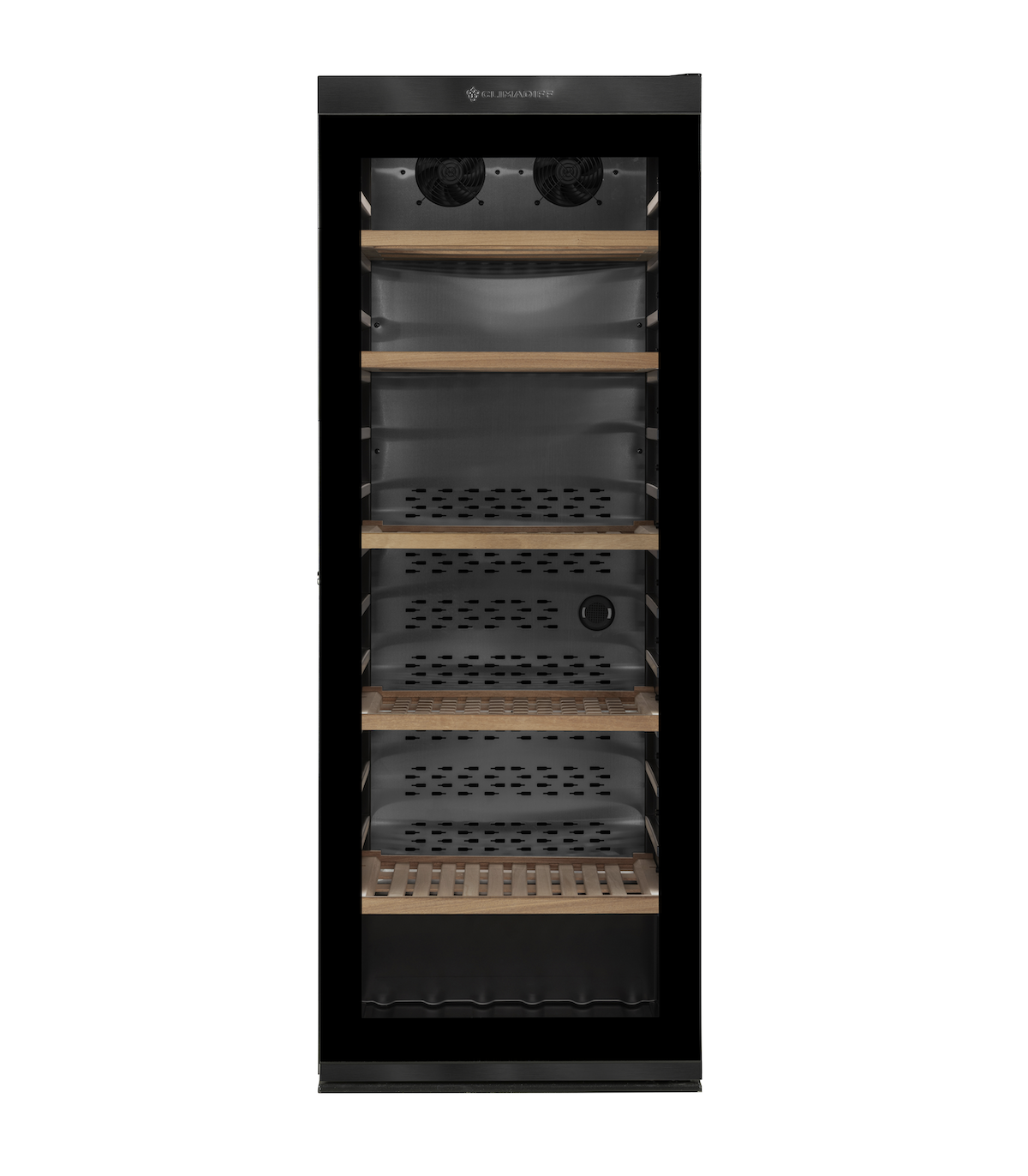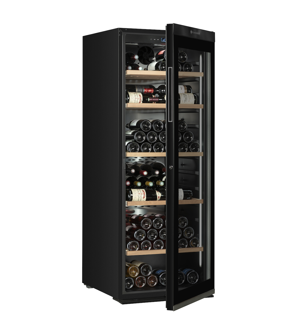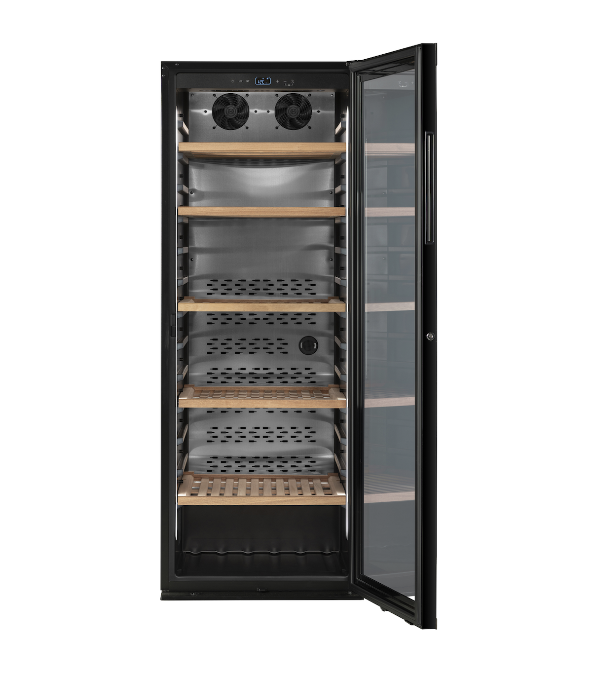 This wine cellar is equipped with a refrigeration system and a compressor that allows a uniform temperature throughout the cellar, avoiding temperature fluctuations that can alter the quality and taste of wine. This system also guarantees a stable humidity, thus preserving the corks and preventing the oxidation of the wine. In addition, the system operates silently to ensure optimal conservation of your wine collection without disturbing noise, namely 38 decibels.