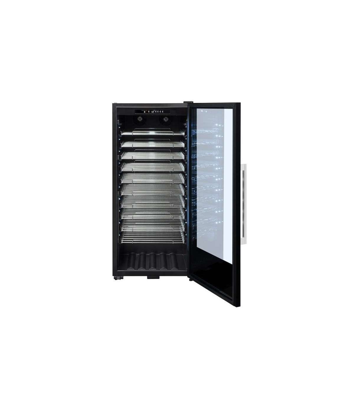 The PRO110 commercial wine cellar has been specially designed with professionals in mind. This sturdy, heavy-duty cellar is the stylish as well as practical service solution for up to 107 bottles: all arranged horizontally, the labels are placed facing you so you can identify the vintages stored quickly and easily. Essential for prompt and proficient service to your customers.
