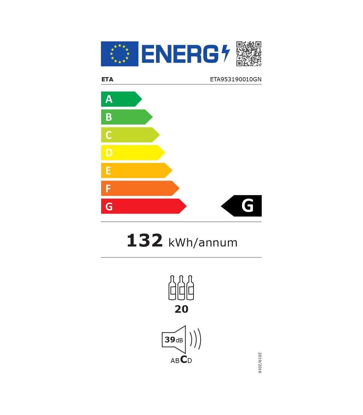 ETA | Wine Cooler | ETA953190010GN | Energy efficiency class G | Free standing | Bottles capacity 20 | Black