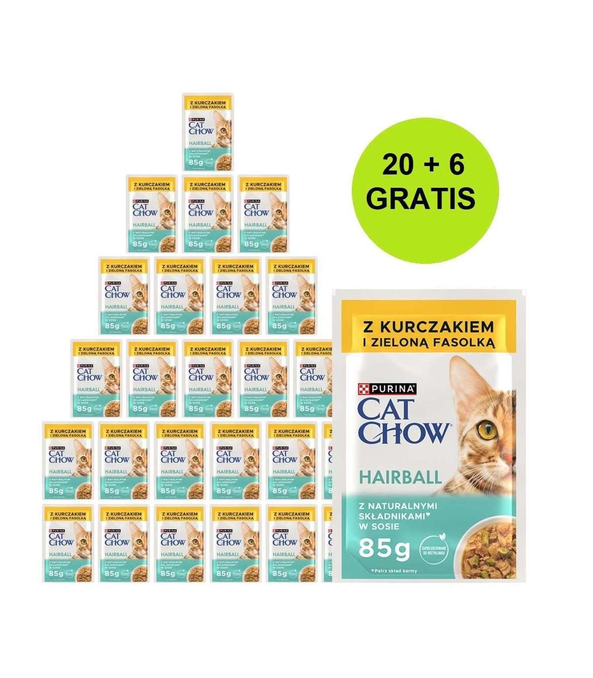 PURINA Cat Chow Hairball Control with chicken and green beans in sauce - wet cat food - 26x85g (20 + 6 GRATIS)