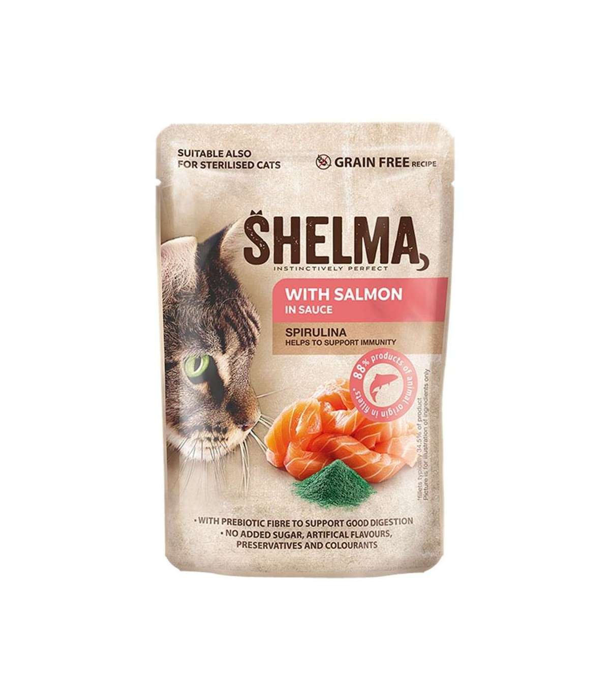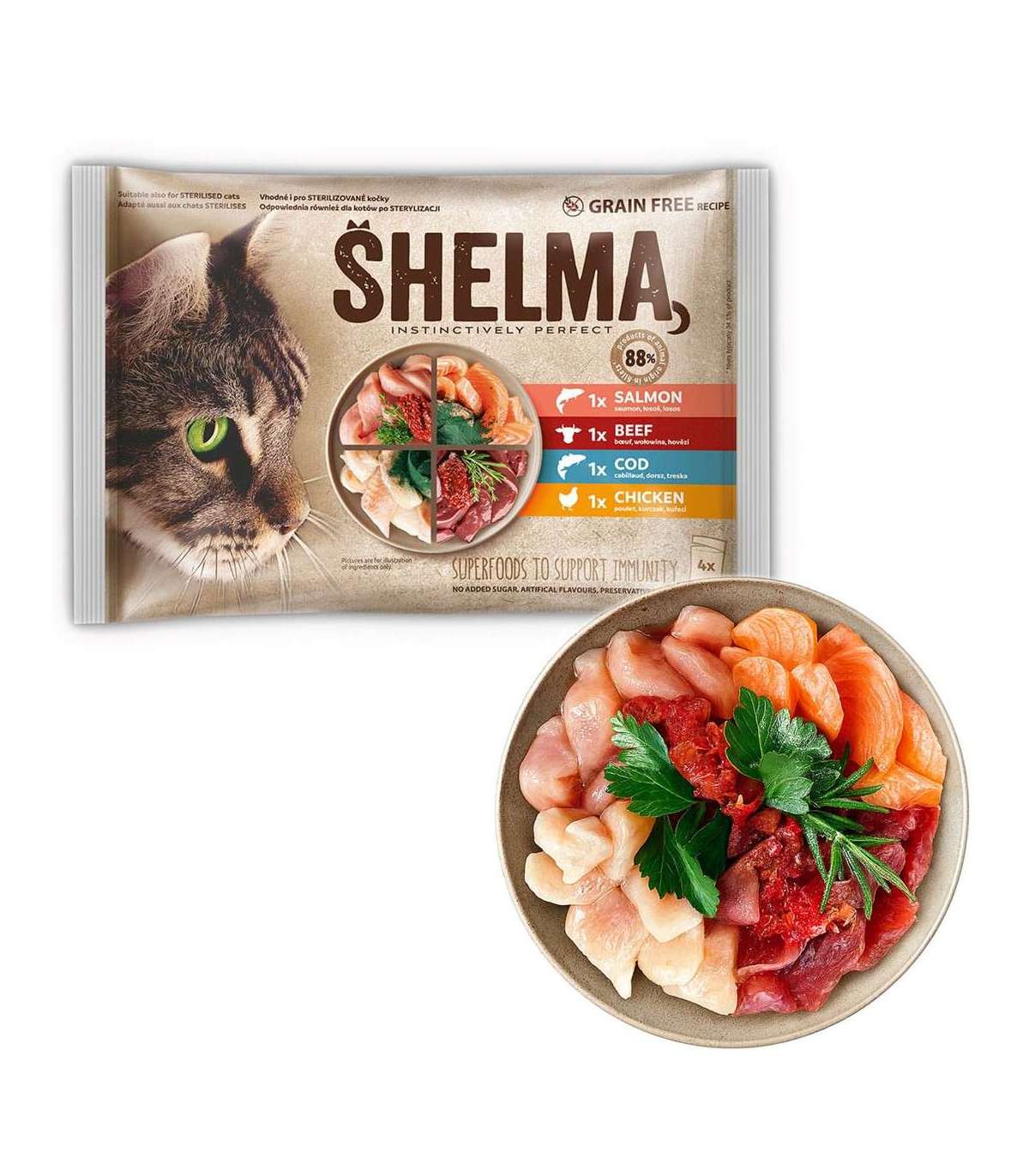 SHELMA Rich in salmon, cod, beef and chicken - wet cat food - 4x85g