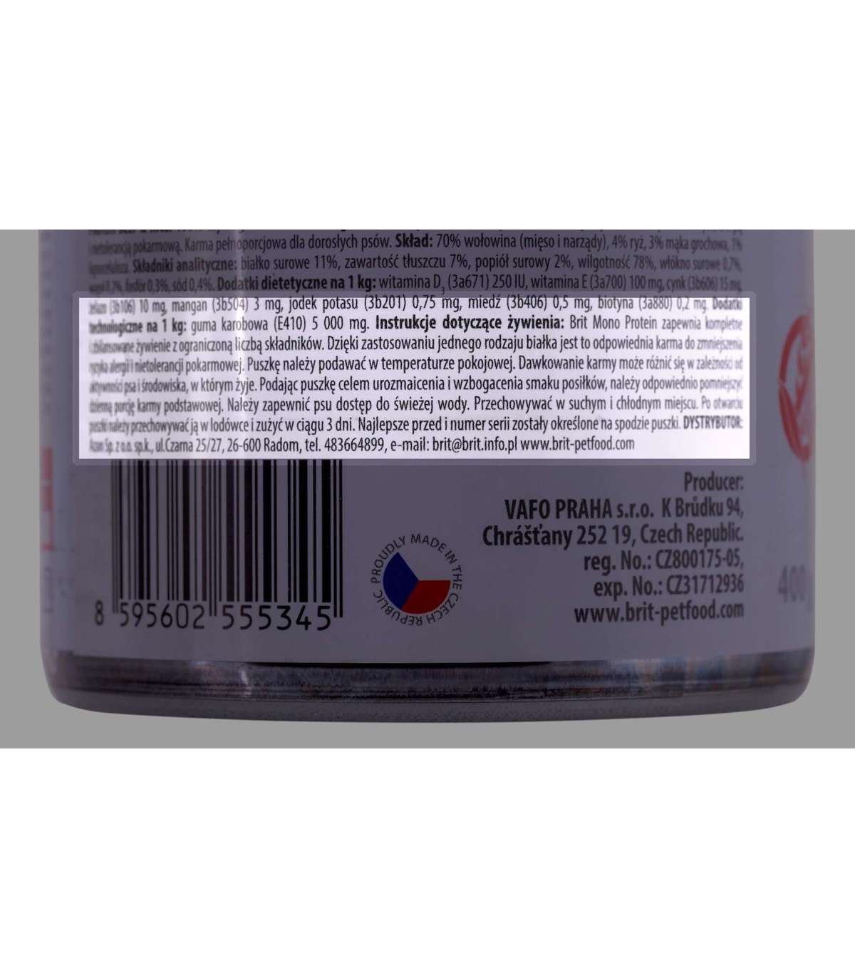 BRIT Mono Protein Beef & Rice - wet dog food - 400g