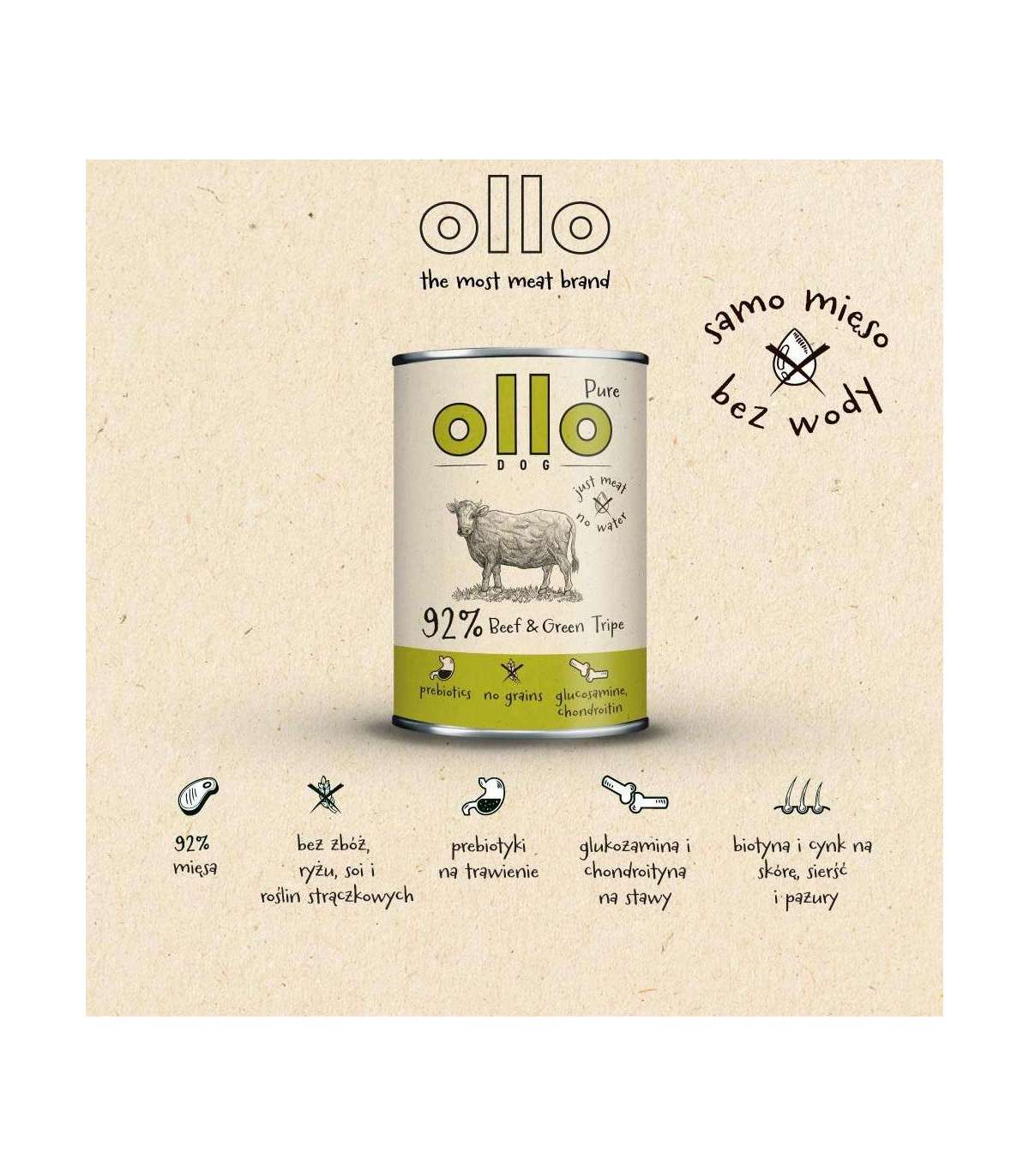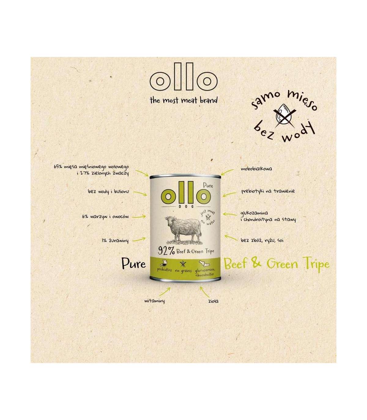 OLLO Pure Beef and Green tripe - wet dog food - 400g