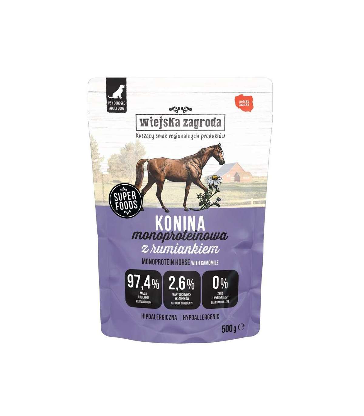 WIEJSKA ZAGRODA Monoprotein Horsemeat - wet dog food - 500g