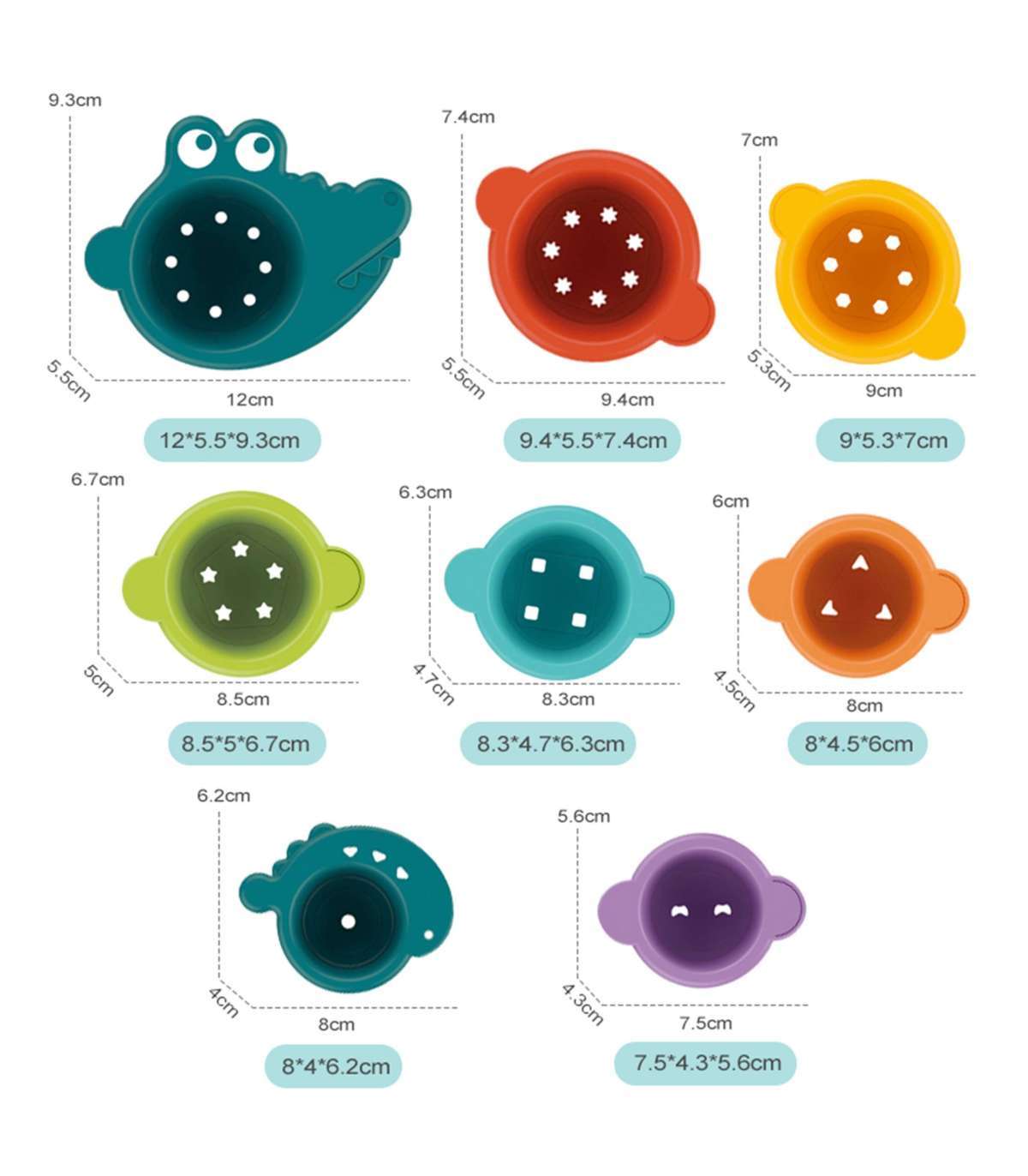 - - набор содержит 8 переливных стаканчиков - один из них выполнен в форме крокодила,