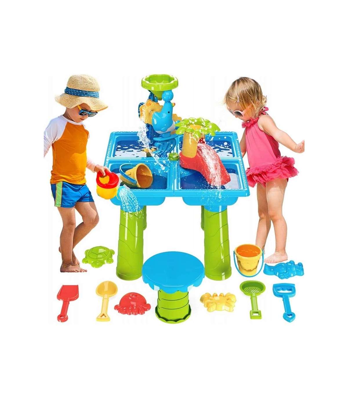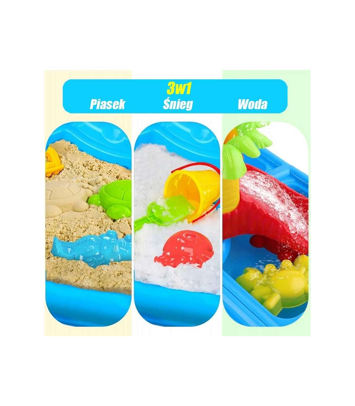 Zestaw 3w1 Beach Toy Table od marki Woopie to fantastyczna zabawka dla dzieci, które kochają odkrywać świat przez kreatywną zabawę. Wodny stolik z mnóstwem dodatków pozwala maluchom rozwijać wyobraźnię, motorykę i zdolności manualne, zarówno na plaży, w ogrodzie, jak i w domu!
