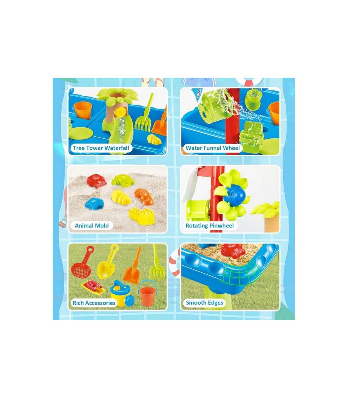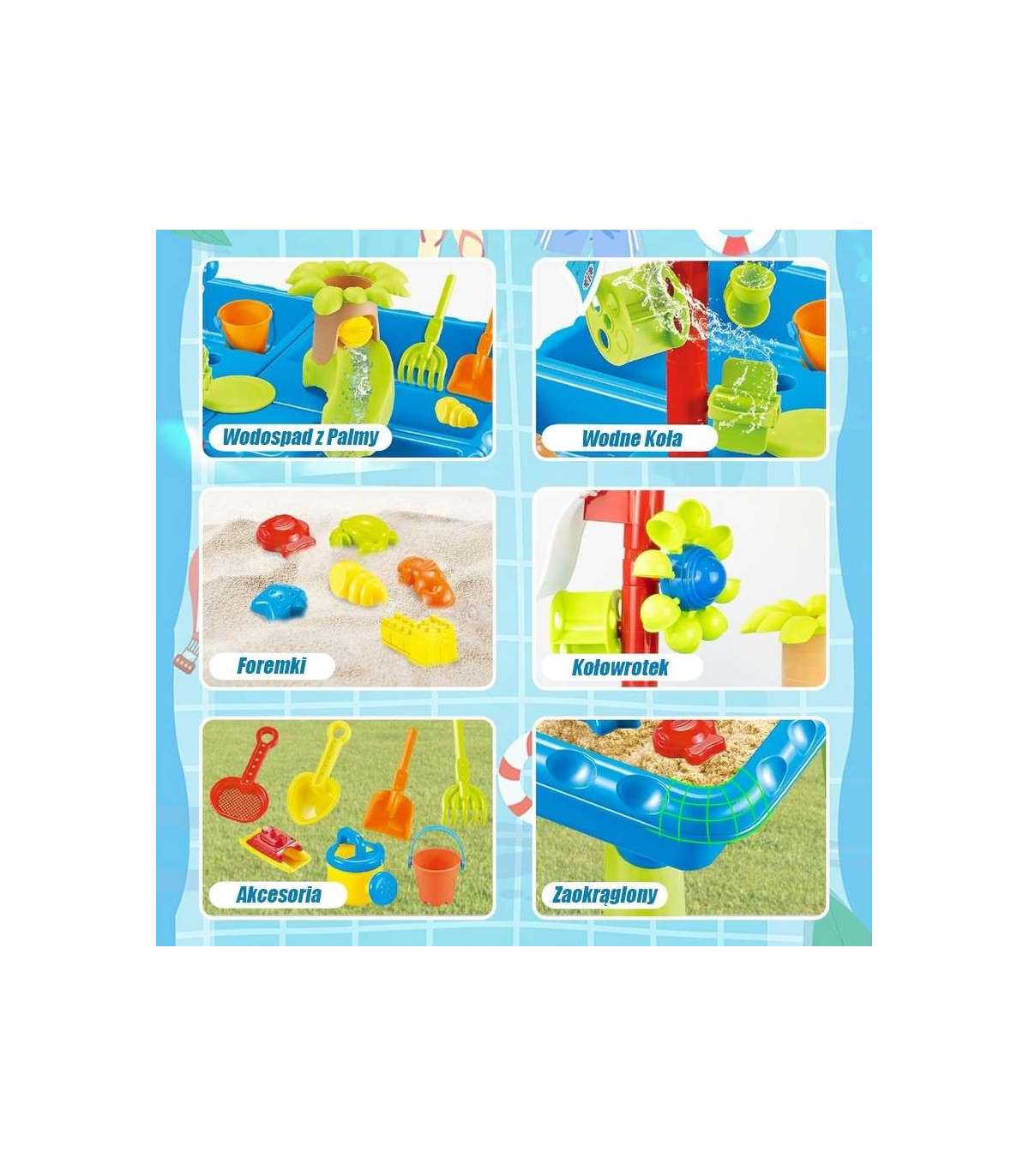 WOOPIE Stolik Wodny 2w1 Piaskownica z Krzesełkiem XL Aquapark 4-Baseny 13 akc.