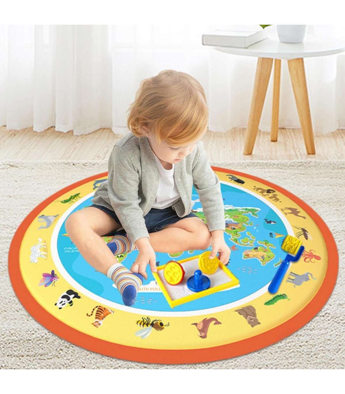 Magiczna mata wodna Magical Water Canvas od marki Woopie to kreatywna i edukacyjna zabawka, która zachwyci każde dziecko. Dzięki specjalnym pisakom wodnym malowanie jest całkowicie bezpieczne – wystarczy woda, aby tworzyć niesamowite rysunki i wzory. Kolorowa mapa świata z zaznaczonymi zwierzętami sprawia, że zabawa staje się także okazją do nauki geografii i poznawania przyrody. W zestawie znajdują się liczne akcesoria: stempelki, szablony, wałek, pisaki i gąbka – które urozmaicają twórczość. To idealny pomysł na prezent, który rozwija wyobraźnię i gwarantuje godziny radosnej zabawy bez bałaganu.