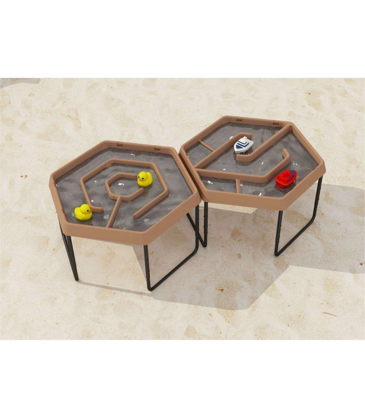 MASTERKIDZ Sześciokątny Stolik Do Zabawy Piaskiem i Wodą Labirynt Regulowana Wysokość
