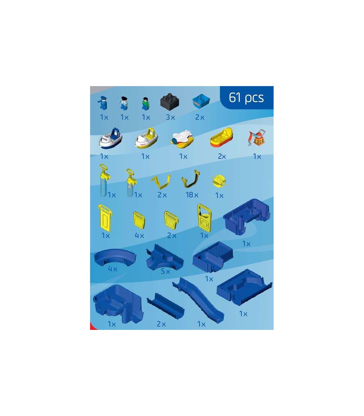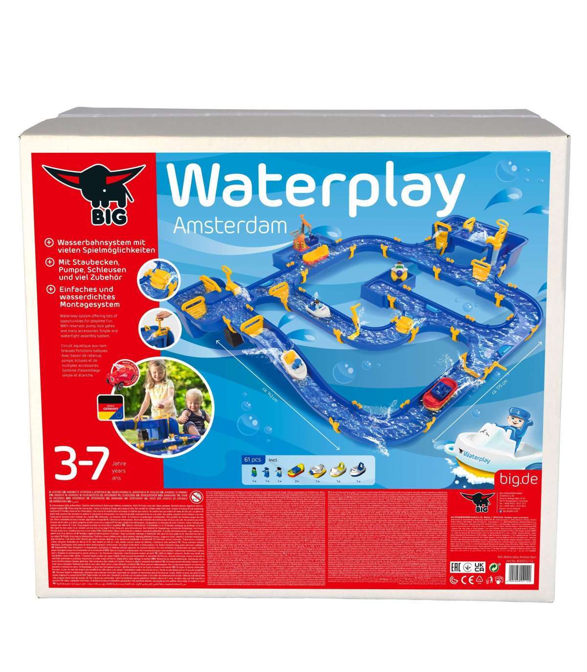 Система каналов Amsterdam Waterplay, сочетает игру с удовольствием взаимодействия с водой. Ребенок, наливая воду, создаёт движение, благодаря которому перемещаются находящиеся в каналах лодки. Поток воды в канале можно также получить, приводя в движение водяное колесо.