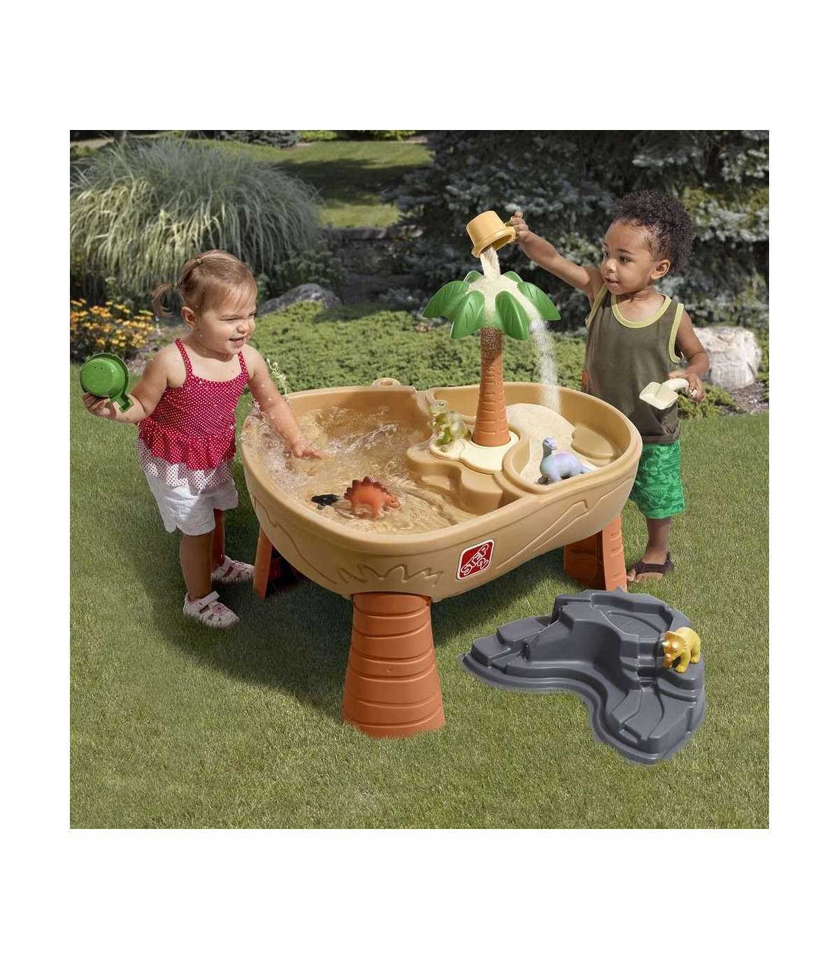 Приключение с Парком динозавров для маленьких исследователей — эксклюзивный продукт бренда Step2, который обеспечит много часов замечательной игры на свежем воздухе. Устойчивый двухкамерный водный стол для маленьких любителей доисторических времен оснащён большой песочницей и бассейном.
