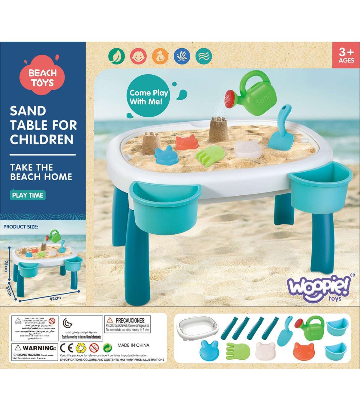 WOOPIE Водный столик 2 в 1 Песочница, 7 предметов.