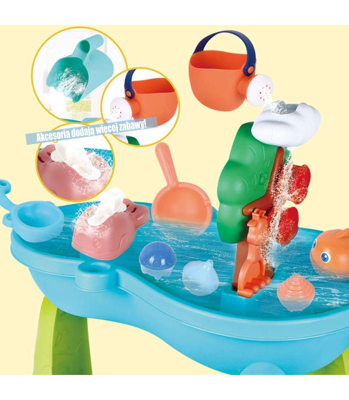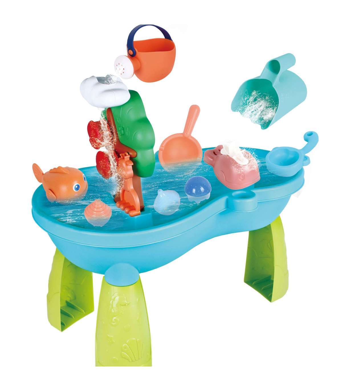 Водный стол 2 в 1 Песочница марки WOOPIE — идеальная игрушка для игры с водой и песком. Набор включает аксессуары, такие как: рыбки, лейку, ведерко, поплавки и многое другое. Столик имеет водяное колесо, которое вращается при поливании его водой. Набор предназначен для игр как в доме, так и на улице.