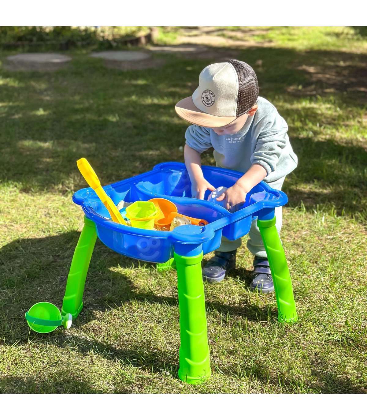 Стол для песка от WOOPIE — идеальная игрушка для игры с водой и песком. В набор входит 9 аксессуаров: ведёрки, лейки, лопатка и многое другое. Стол разделён на две части: в одну можно налить воду, а в другую насыпать песок. Набор предназначен для игры как дома, так и на улице. Отлично подходит для игры дома, на пляже или в песочнице.