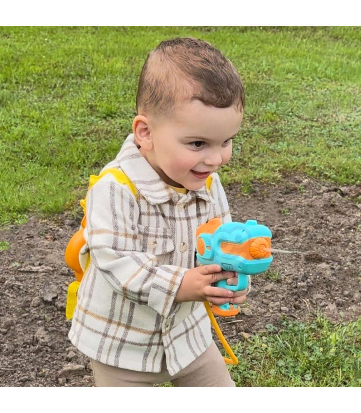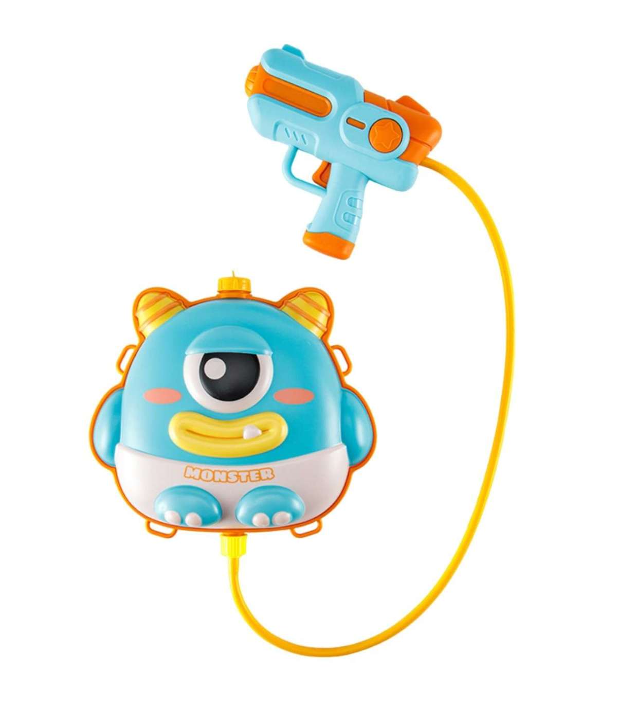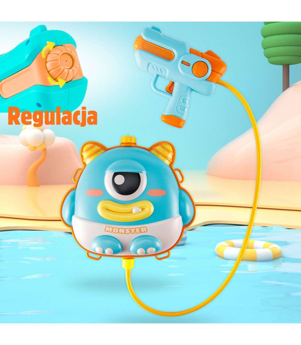 Водяной пистолет с рюкзаком UFO MONSTER от бренда WOOPIE — идеальный набор для игры в жаркие дни. Уникальный дизайн рюкзака заинтересует не одного ребенка. Дополнительно большая емкость целых 2,1 литра рюкзака позволяет долго играть без частого наполнения бака. Поворачивая переднее отверстие струи, можно регулировать струю от непрерывной до распылителя. Очень дальний радиус до 5-8 м. Работает от аккумулятора: достаточно зарядить аккумулятор, прилагаемый к игрушке, и нажимать на спуск, наслаждаясь струей воды.