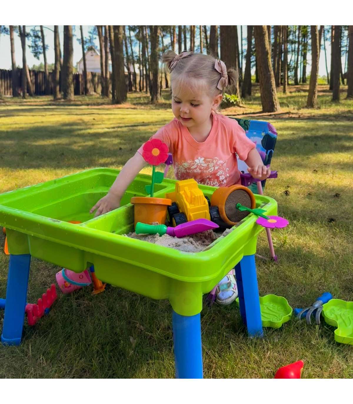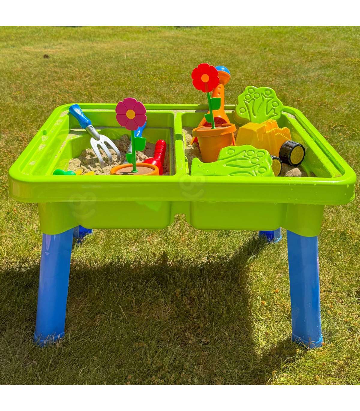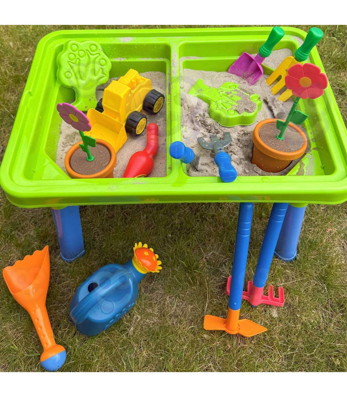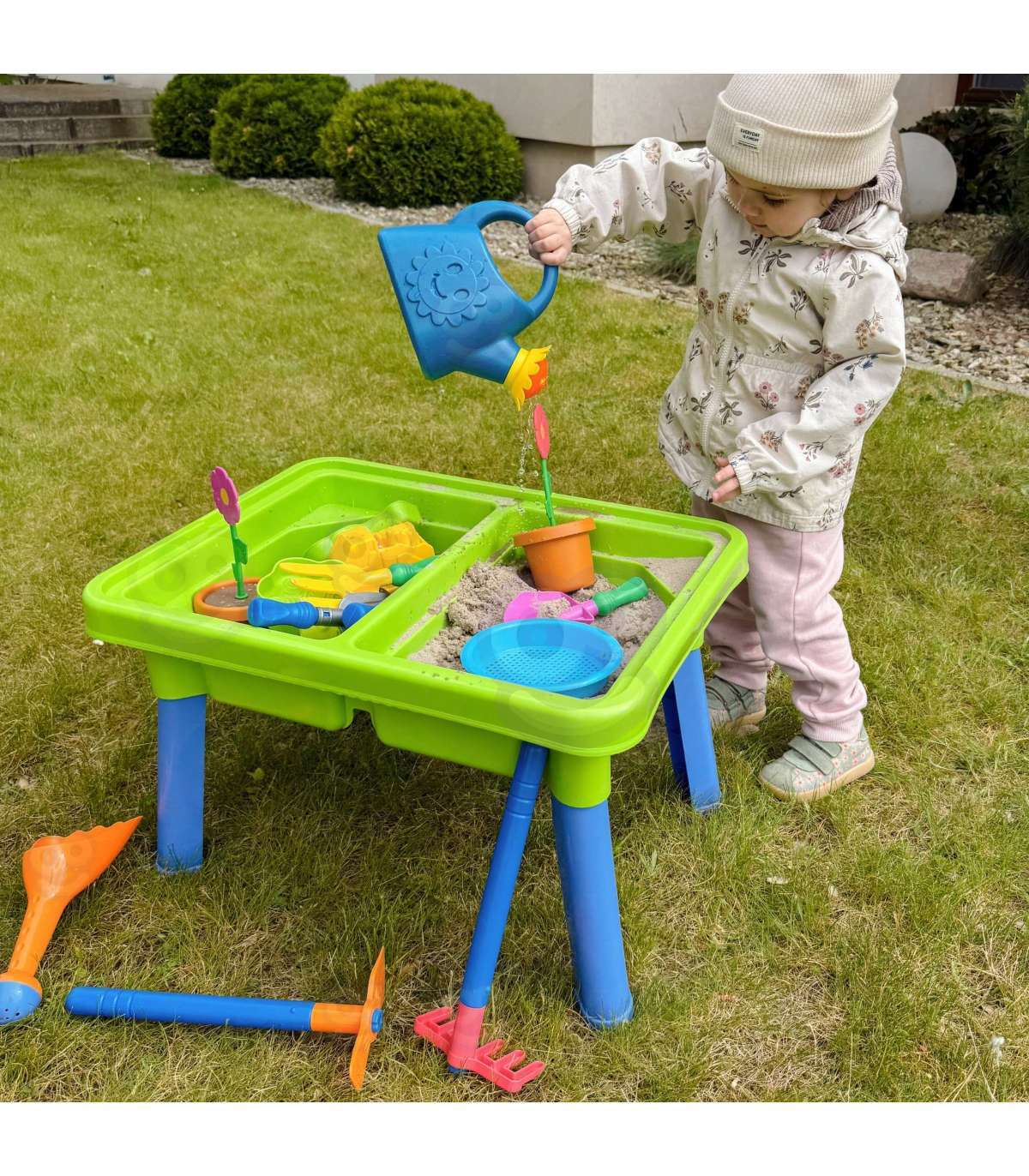 2-в-1 водный стол песочница от бренда WOOPIE — отличная игрушка, которая подарит детям бесчисленные часы игры с водой и песком. В комплект входит целых 13 разнообразных аксессуаров, таких как: формочка, лейка, экскаватор и две лопатки. Столик имеет две углубления – одно можно заполнить водой, другое песком, что позволяет творчески играть в любом месте. Набор идеально подходит как для дома, так и для пляжа или песочницы. Этот универсальный набор позволяет детям создавать неограниченные сценарии игр, стимулируя их воображение и развивая мелкую моторику. Идеален для творческой игры как в помещении, так и на свежем воздухе!