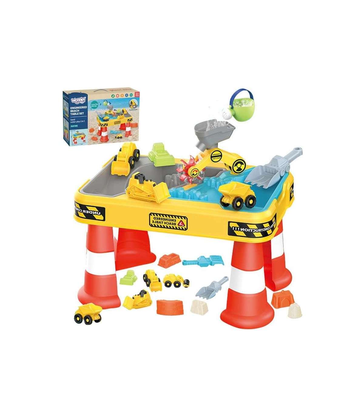 WOOPIE водный столик 2-в-1 и песочница — строительная площадка + 4 машинки (12 элементов)