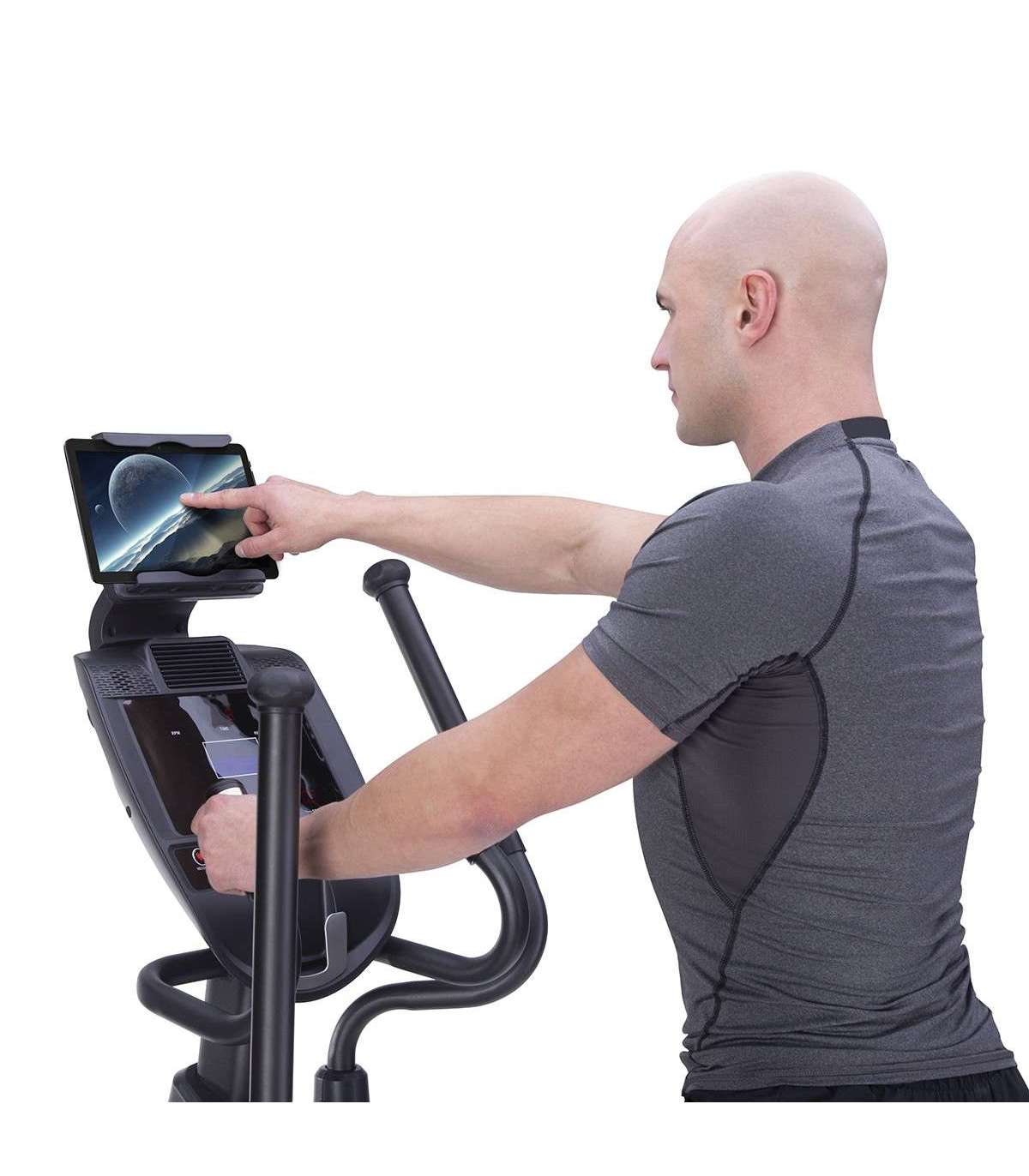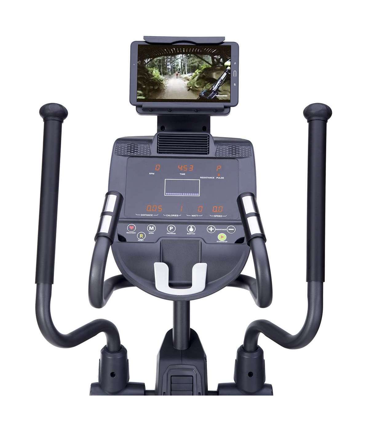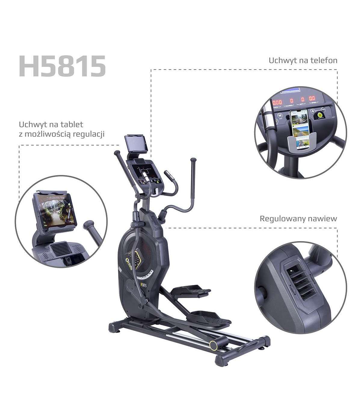 Кросс-тренажер предлагает современный компьютер с ЖК-дисплеем. Управление очень интуитивное и простое. Модель H5815 предлагает 22 запрограммированных тренировки. Каждый пользователь, независимо от своего уровня физической подготовки, найдет подходящую тренировку для себя. Кроме того, компьютер считает и отображает все параметры, необходимые во время тренировки. Дополнительно эта модель оснащена креплением для мобильного устройства, благодаря чему можно легко использовать планшет во время тренировки.