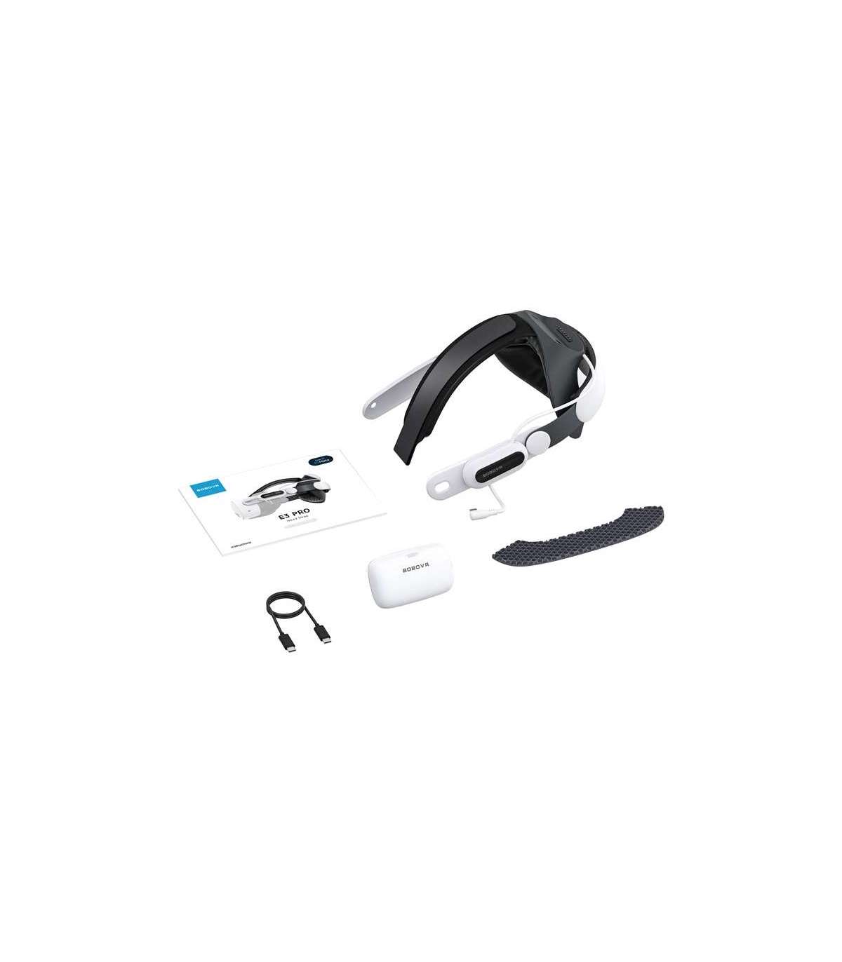 BOBOVR E3 Pro is an advanced weight relief strap designed specifically for Meta Quest 3 and 3S users. Its design was created to distribute weight evenly, significantly reducing pressure on the face and head. A wide, soft cushion in the back and an adjustable adjustment mechanism make the strap fit perfectly on the head, guaranteeing comfort even during long sessions in virtual reality.