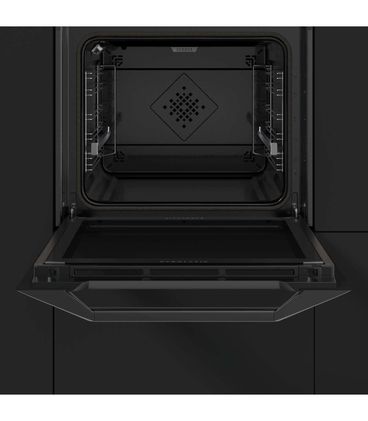 Pyrolysis is a highly efficient self-cleaning system, during which the oven heats up to 500 °C, charring the dirt accumulated inside the oven. After the end of the program, when the oven cools down, all you have to do is wipe the ash with a cloth. You can choose between 2 programs of different intensity: