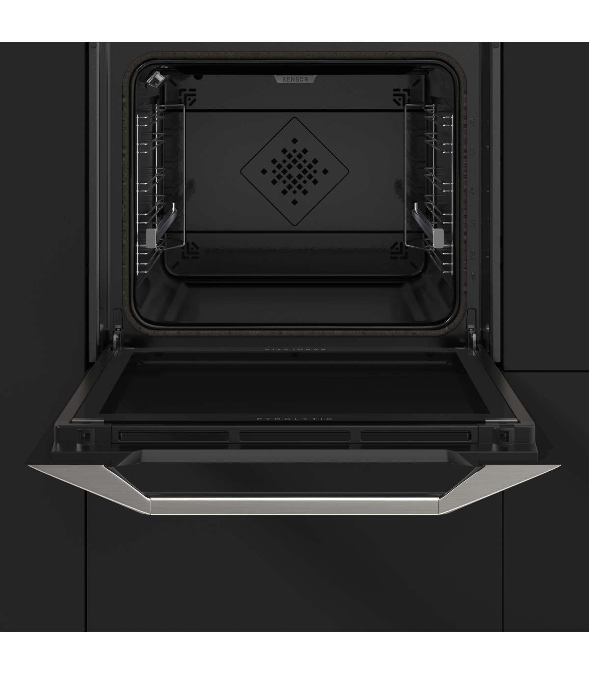 Pyrolysis is a highly efficient self-cleaning system, during which the oven heats up to 500 °C, charring the dirt accumulated inside the oven. After the end of the program, when the oven cools down, all you have to do is wipe the ash with a cloth. You can choose between 2 programs of different intensity: