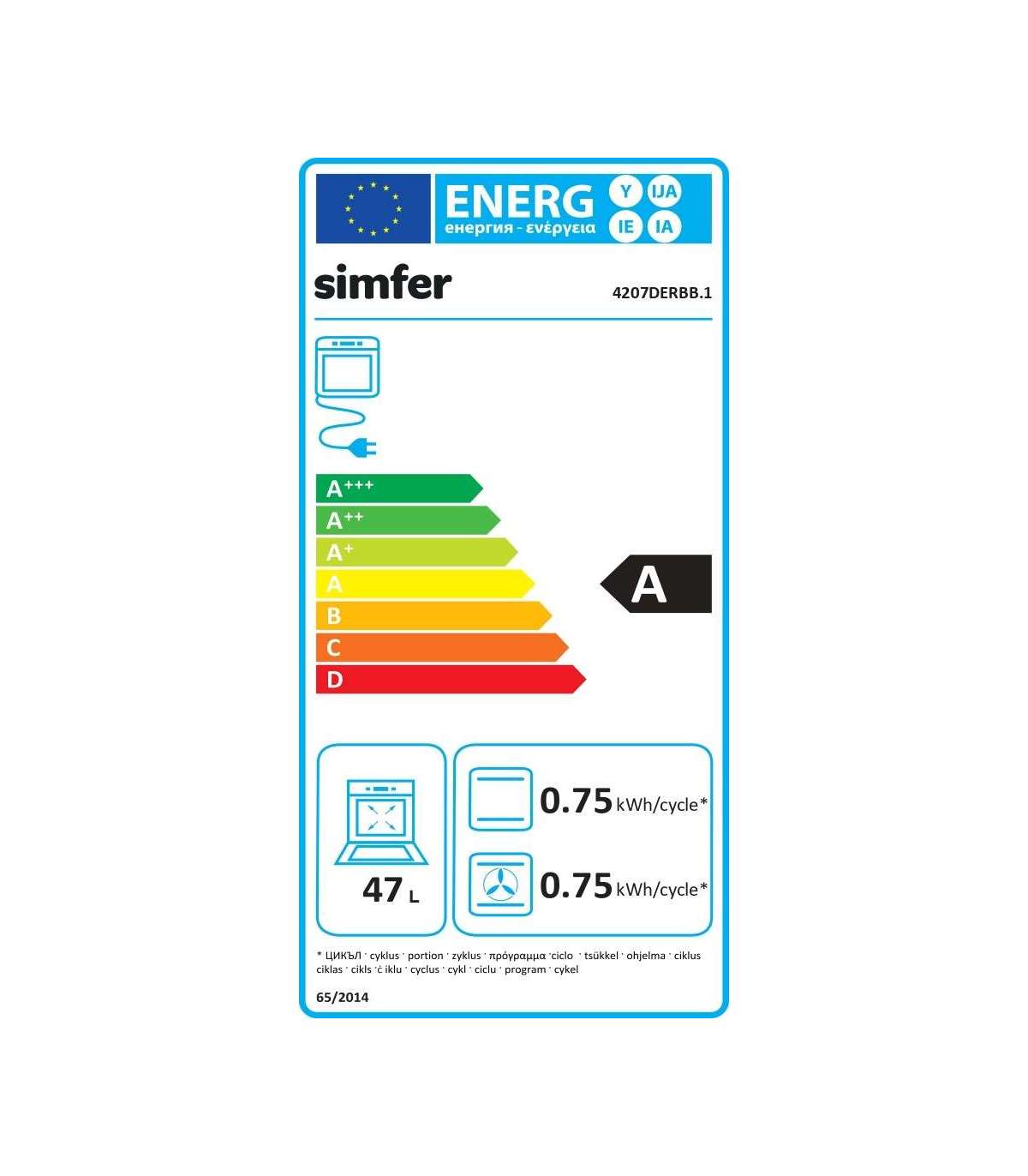 Simfer Oven 4207DERBB.1 47 L, Multifunctional, Manual, Pop-up knobs, Width 45 cm, White