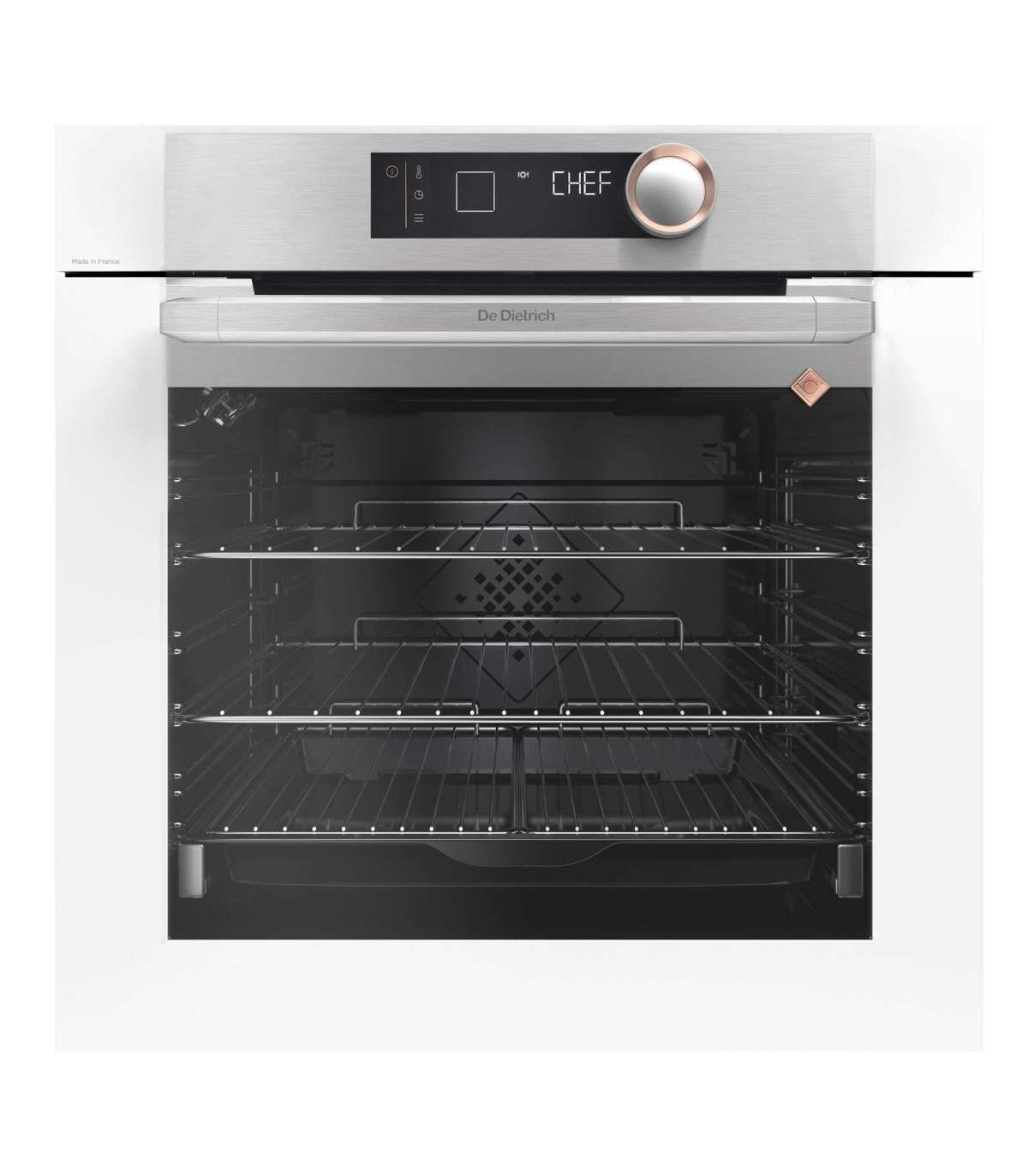 The "Chef" Mode - This exclusive technology patented by De Dietrich allows you to prepare 15 of your most frequently-cooked meals automatically. You simply choose the dish on your menu and put it in at the correct height, as recommended by the oven which adjusts all settings automatically.