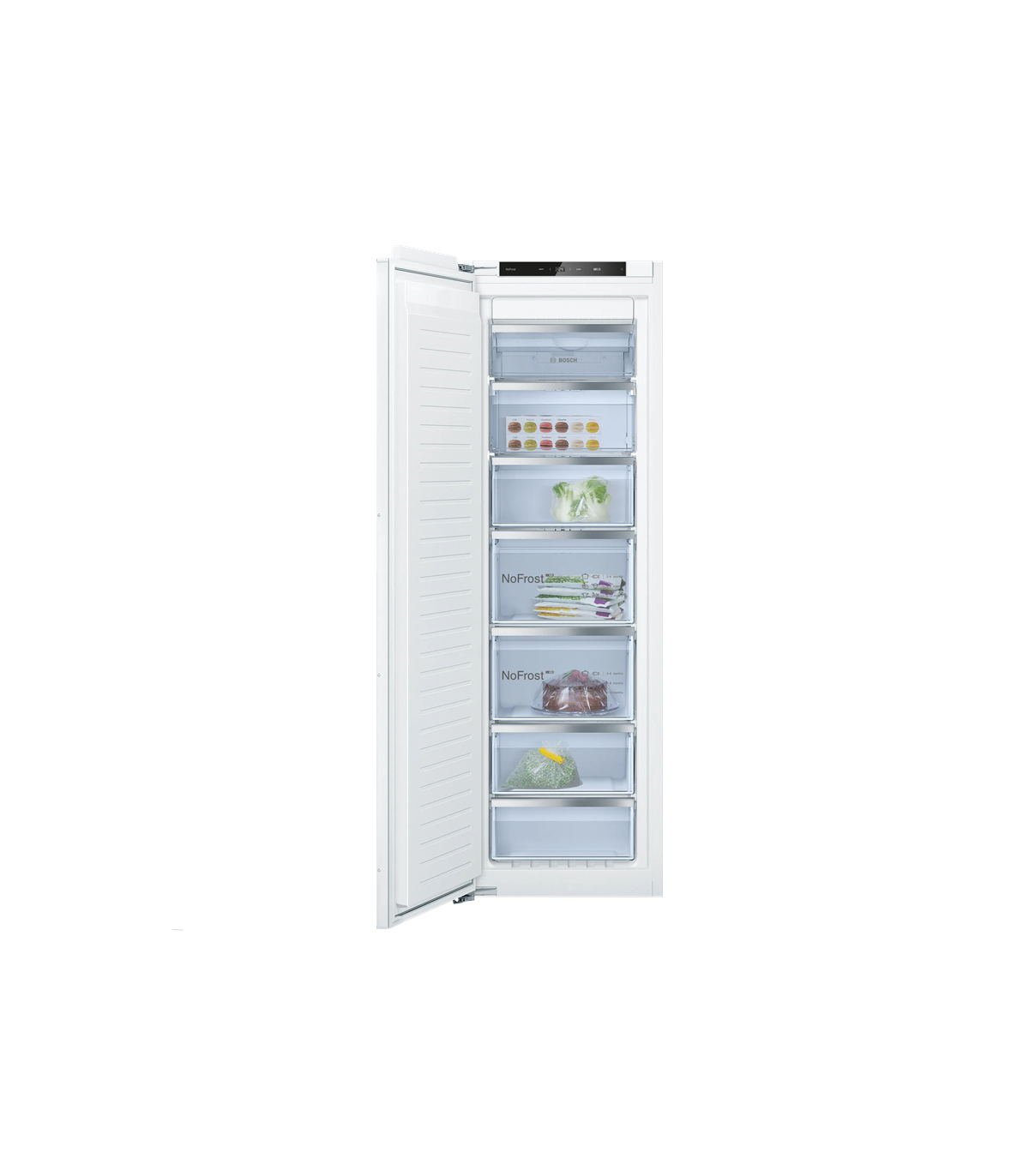 Kui vajate sügavkülmikus rohkem ruumi näiteks mitmekorruselisele tordile või tervele kalkunile, siis saate hõlpsalt kõik turvaklaasist riiulid eemaldada. Kogukaid toitusid, nagu koguperepitsad, saab klaaspindadel mugavalt üksteise peal hoida.