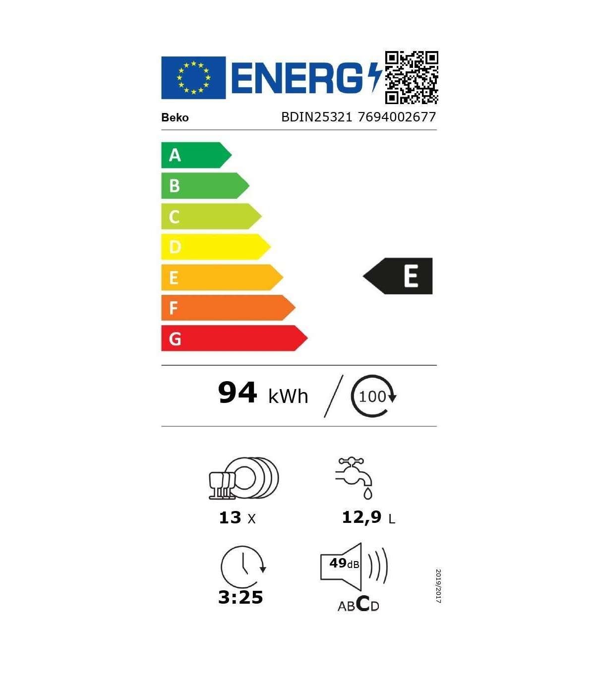 Programs: Eco 50, Intensive 70, Quick&Shine, Mini, Prewash + InnerClean.