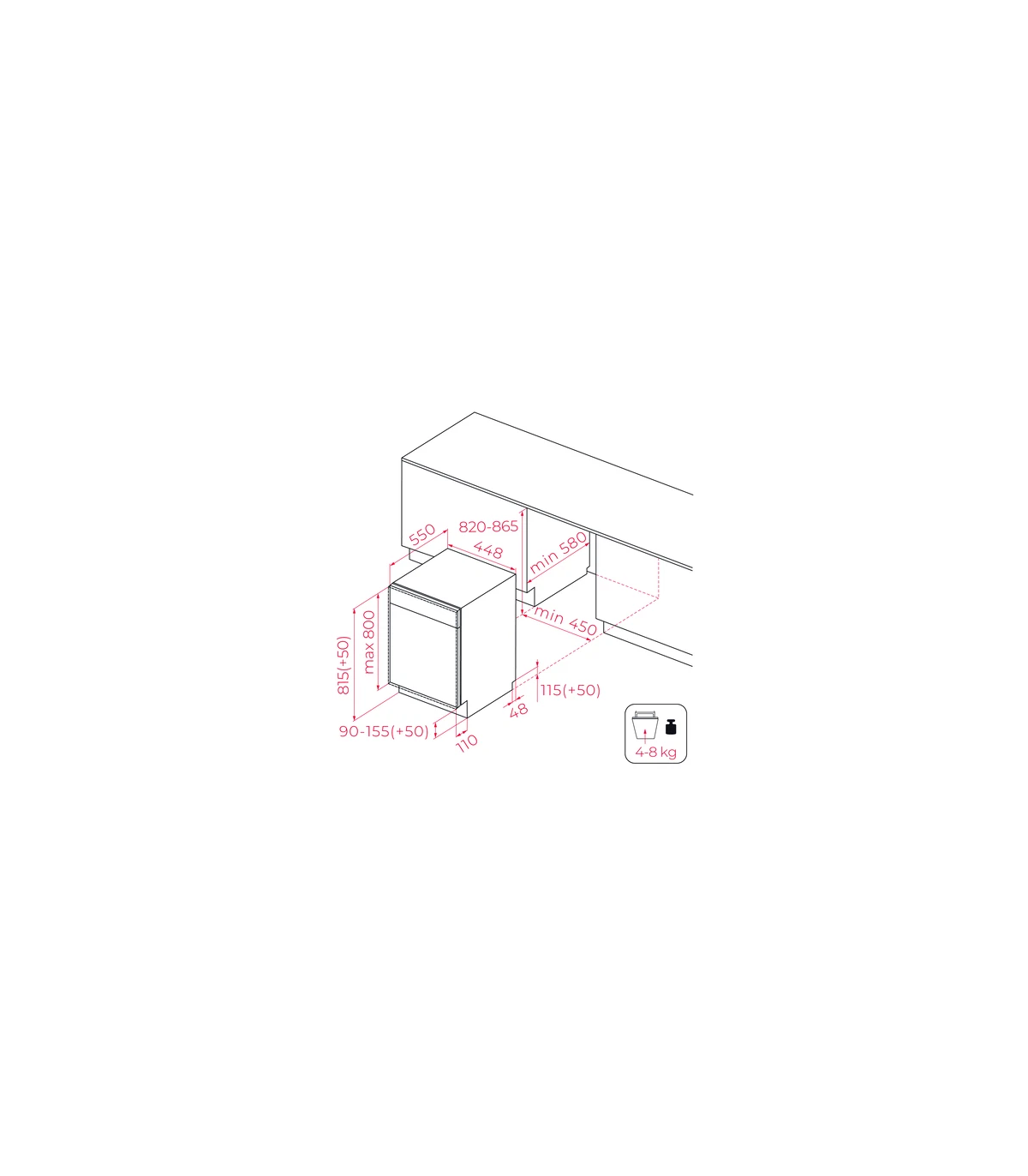 Column installation design allows the dishwasher to be installed both at the plinth level and above.