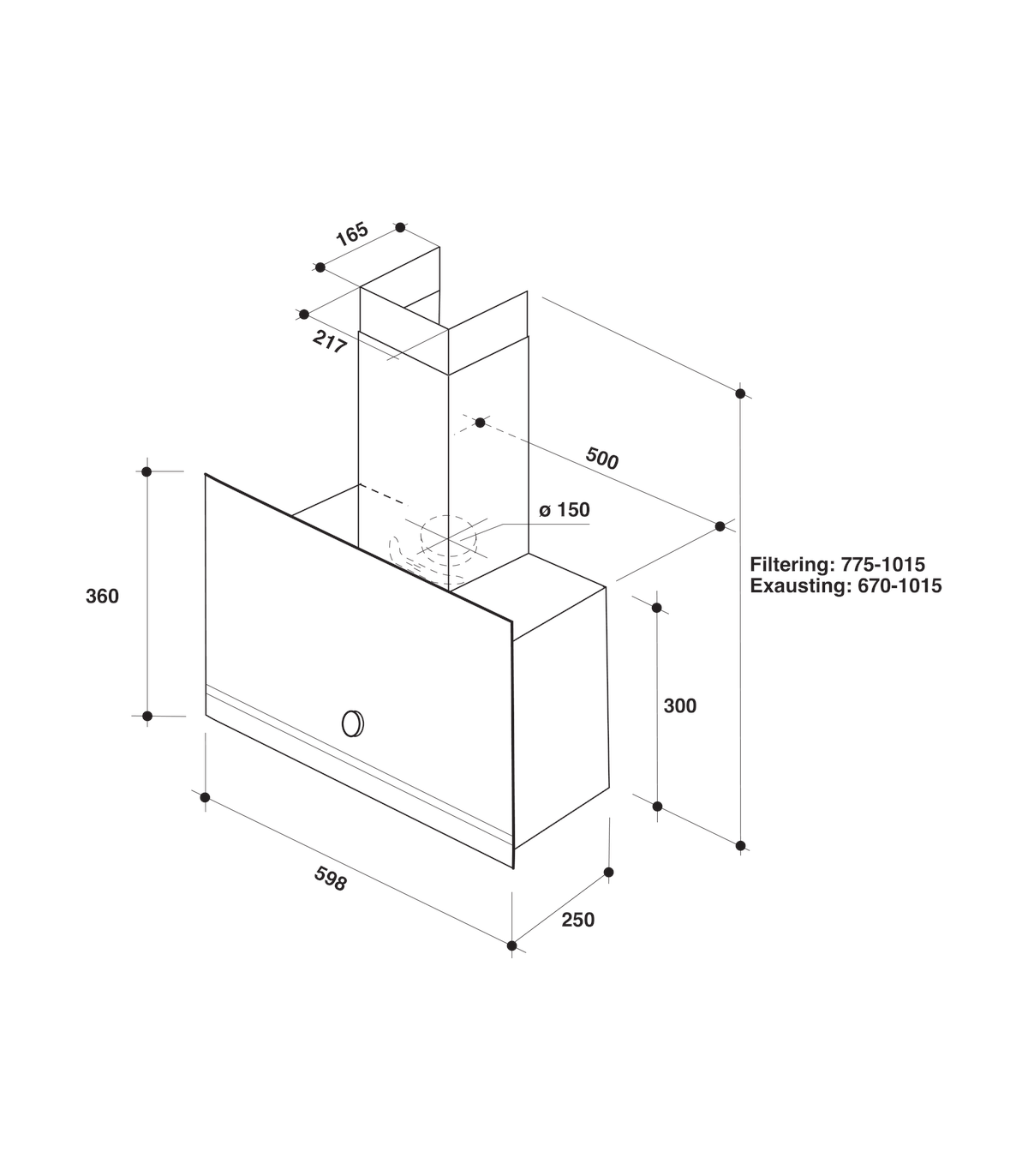 Whirlpool Hood WHVA 62F LM K Wall mounted Energy efficiency class A Width 59.8 cm 485 m³/h Mechanical LED