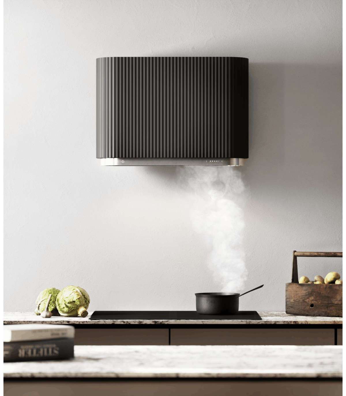 Perimeter suction - the barrier plate in front of the grease filter creates a so-called "venturi" effect, as a result of which the suction power is concentrated over a smaller area. As a result, the efficiency of the air purifier increases and the noise level decreases by about 25%.