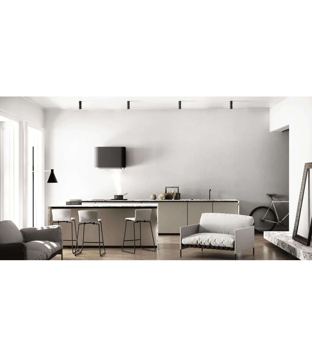 Perimeter suction - the barrier plate in front of the grease filter creates a so-called "venturi" effect, as a result of which the suction power is concentrated over a smaller area. As a result, the efficiency of the air purifier increases and the noise level decreases by about 25%.