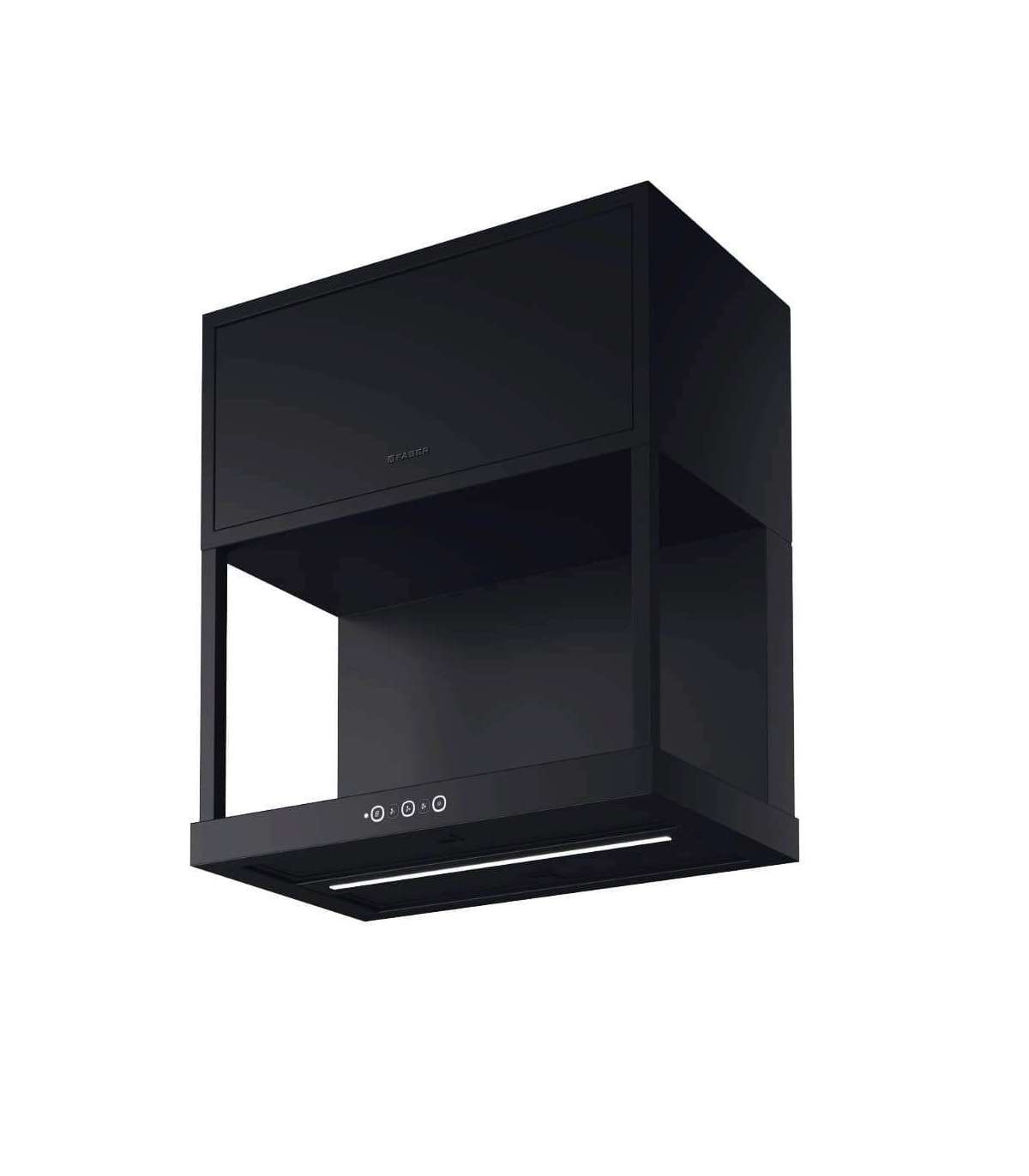 The Modular, Faber’s latest innovative wall extractor. Disguised as a sleek shelving unit, the Modular wall hood provides extra storage space whilst extracting cooking fumes.