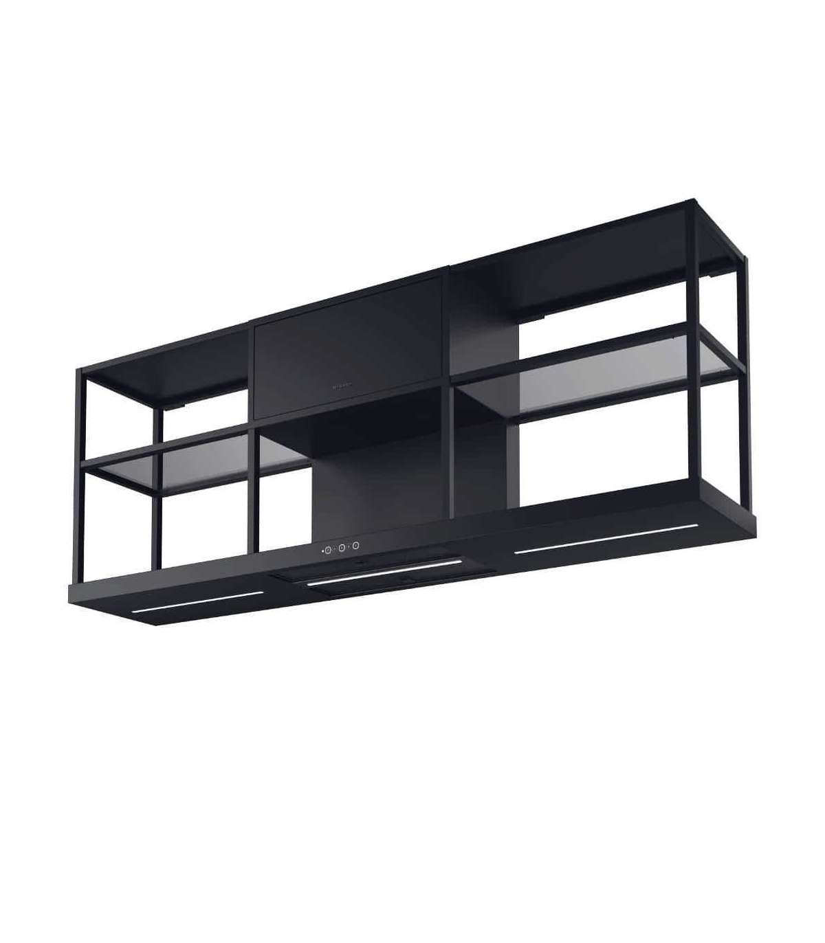 The Modular can be created from three separate units: the centre includes a powerful extractor (720 m3/h) and a sleek shelf, which is available as a standalone cooker hood, which can be installed between cabinetry above a hob.