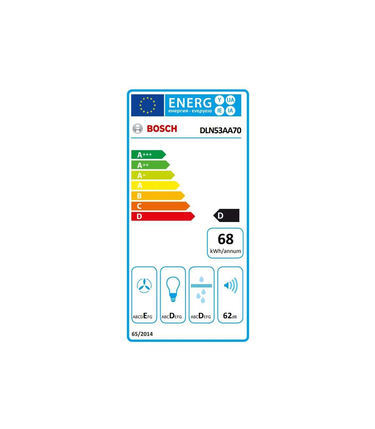 Bosch | Hood Serie 2 | DLN53AA70 | Canopy | Energy efficiency class D | Width 53 cm | 302 m³/h | Slider control | LED | Anthracite