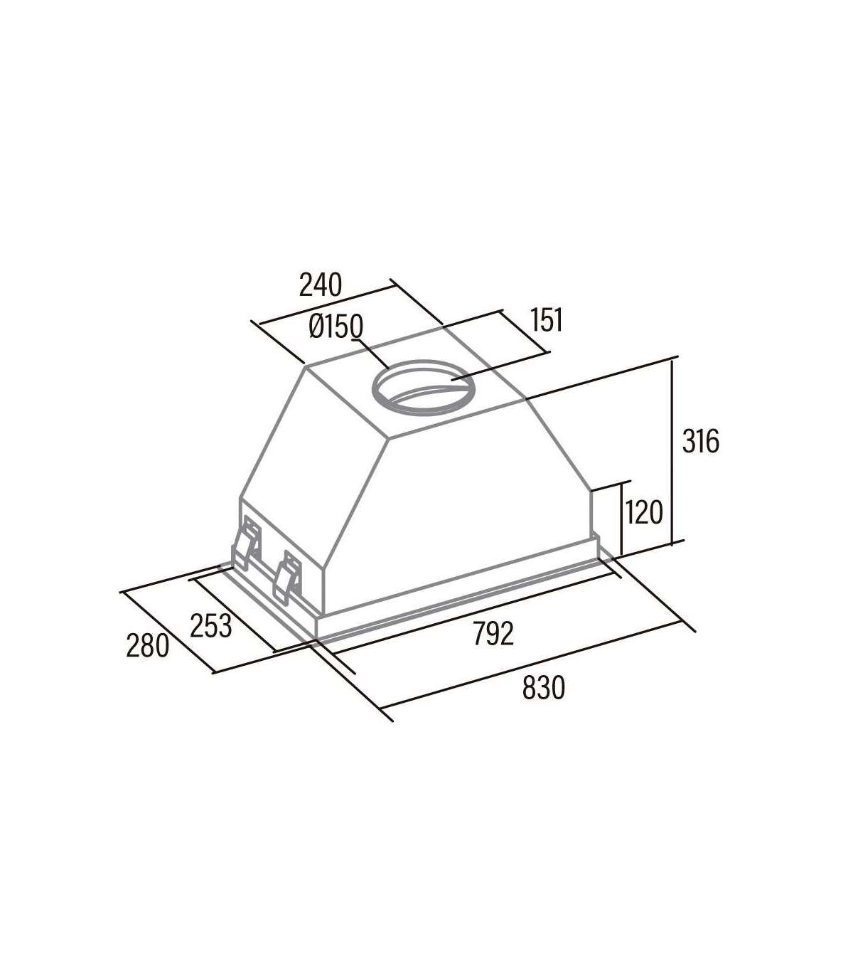 - 4 extraction levels, 3 + 1 TURBO; 1st speed silent mode; High efficiency strip led lighting; Max. Pressure: 470 Pa