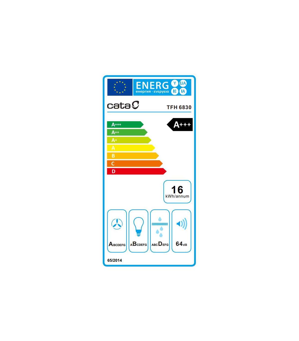 CATA Hood | CAMPANA TFH 6830 GWH | Telescopic | Energy efficiency class A+++ | Width 60 cm | 795 m³/h | Touch control | LED | White