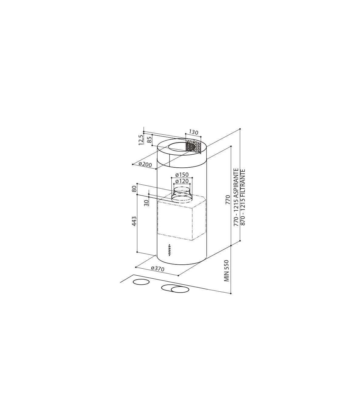 Simple and refined design for a hood with a high technological content where traditional cylindrical shape becomes protagonist of the trendy kitchens being at the same time suitable for every style.