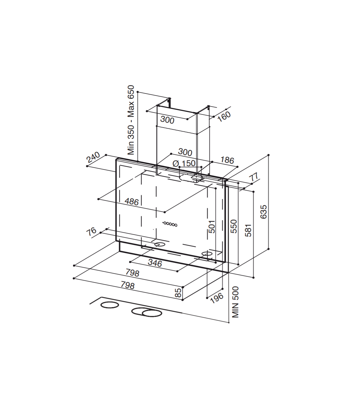 Perimeter Extraction: Reduces the perceived sound by 25% (*). This aspiration guarantees optimised effectiveness exploiting the principle of the Venturi effect: air accelerates as it passes through the constricted extraction space of the panel and then decreases immediately inside the hood and is then easily expelled without need for any particular pressure.