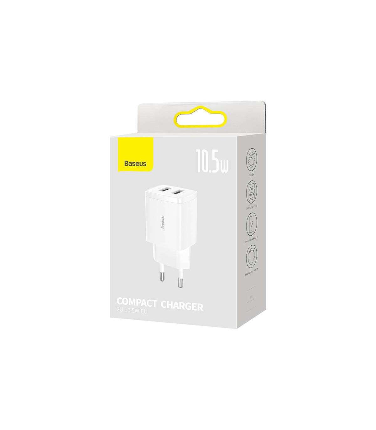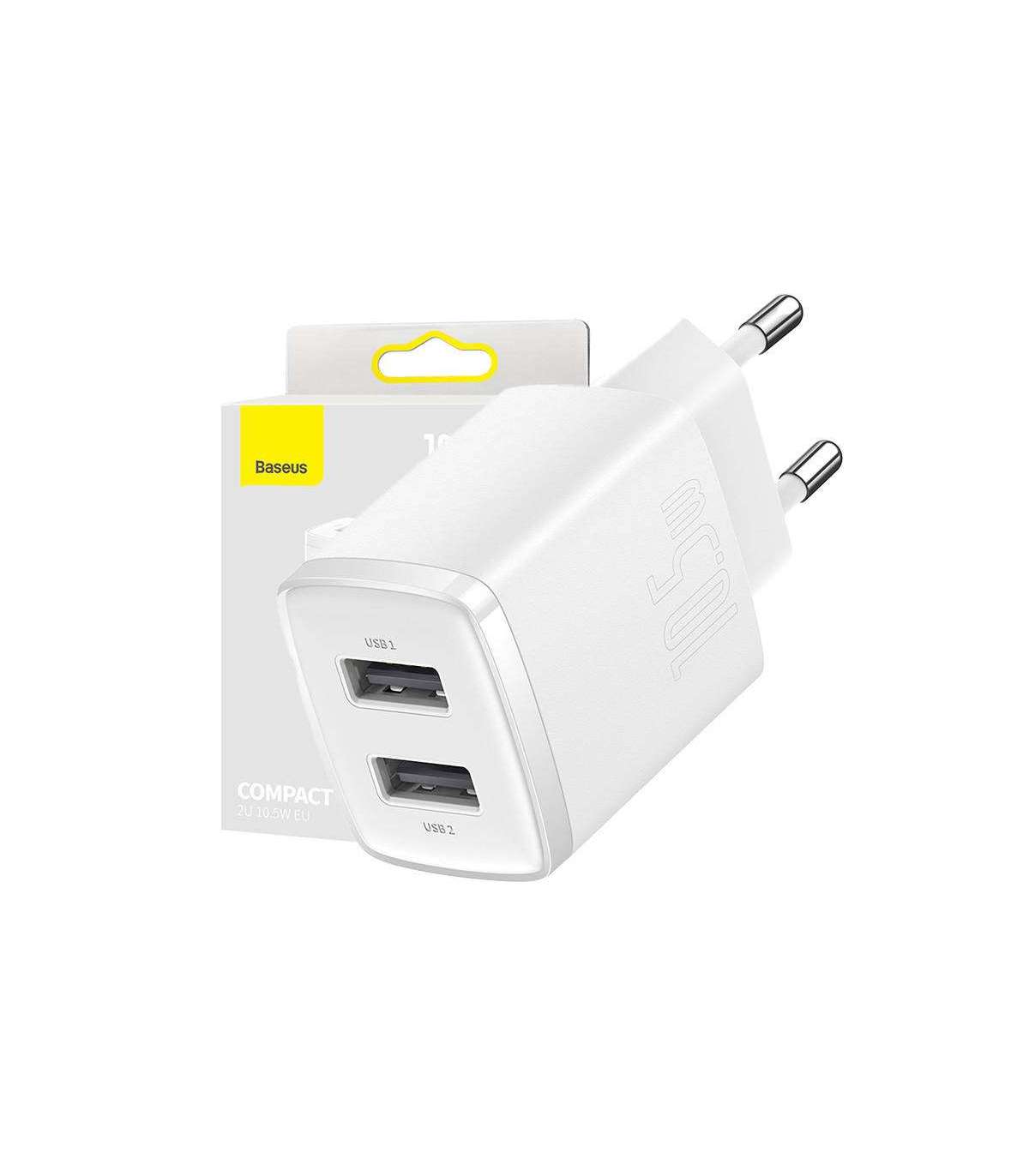 Baseus Compact Quick Charger, 2x USB, 10.5W (white)
