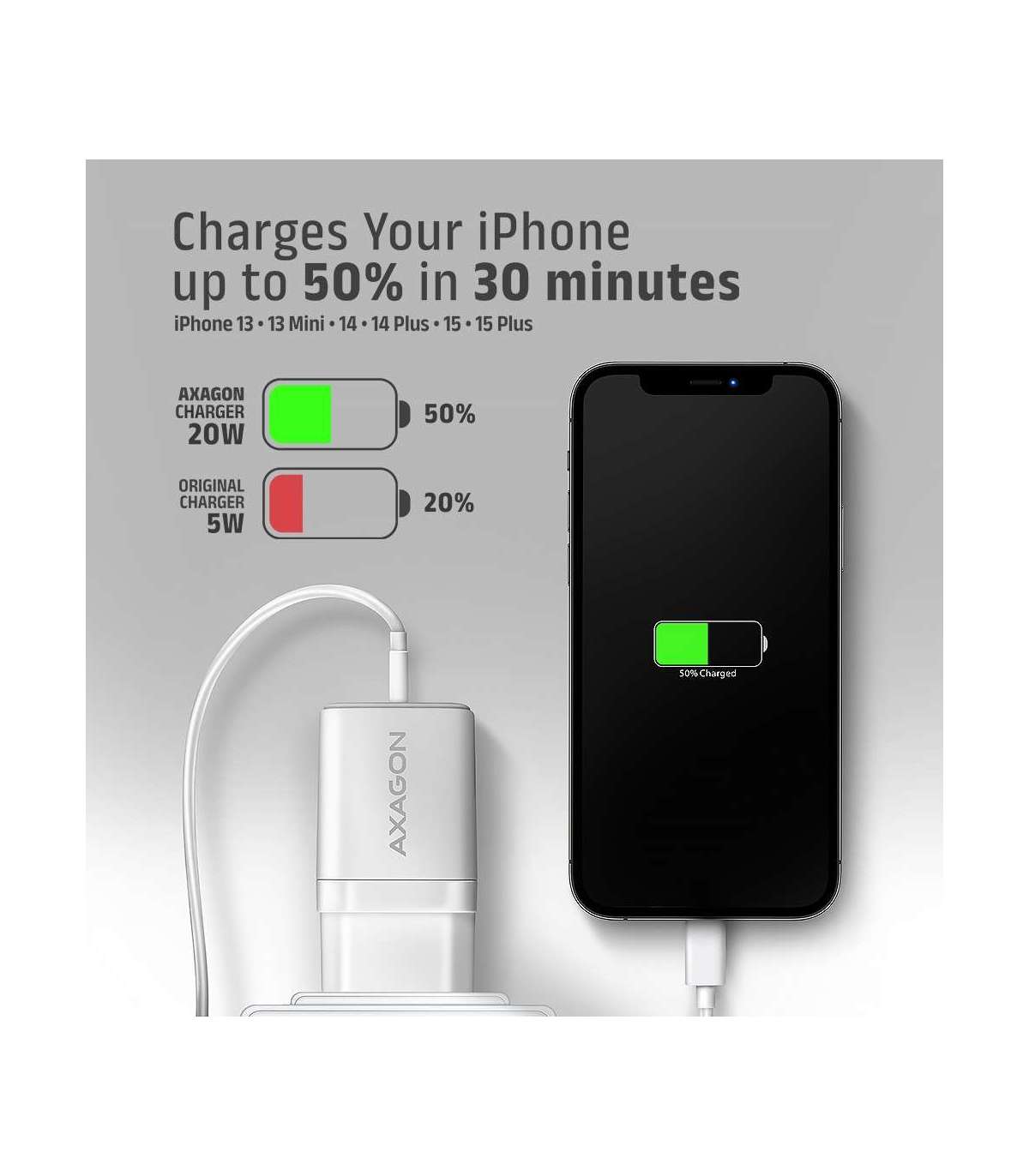 AXAGON Wallcharger 1x port USB-C, PD3.0 / PPS /QC4+/AFC/FCP/Apple, 20W | ACU-PD20W