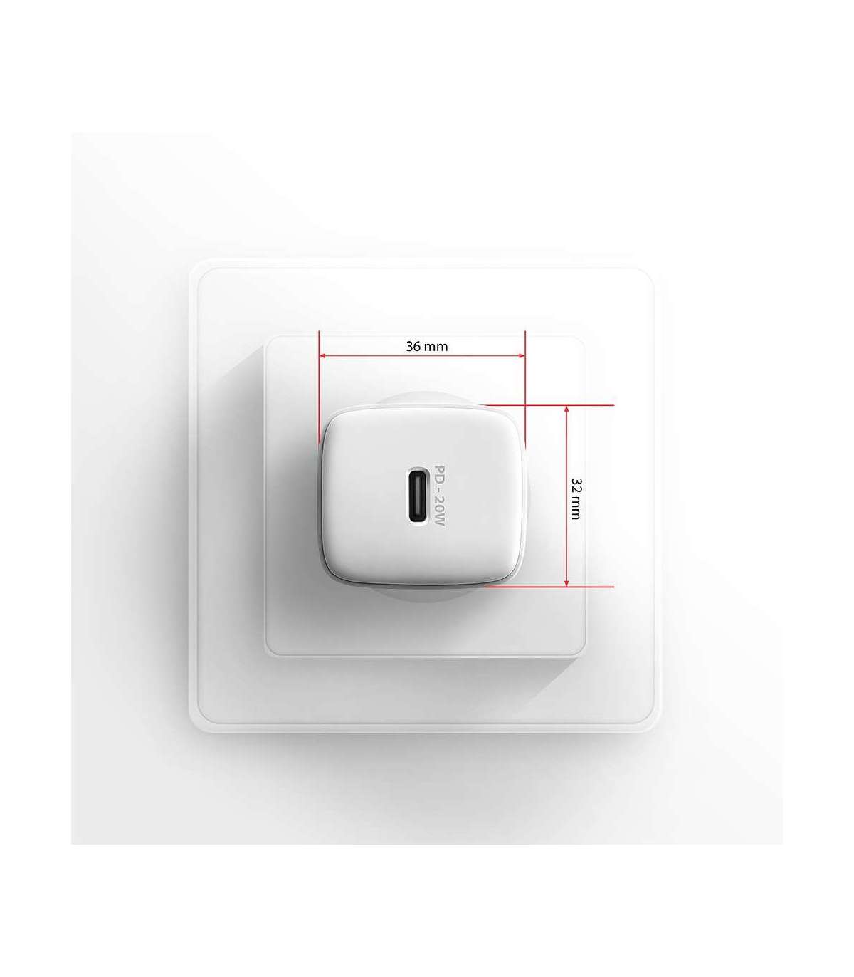 - Wallcharger 1x port USB-C, PD3.0 / PPS /QC4+/AFC/FCP/Apple, 20W