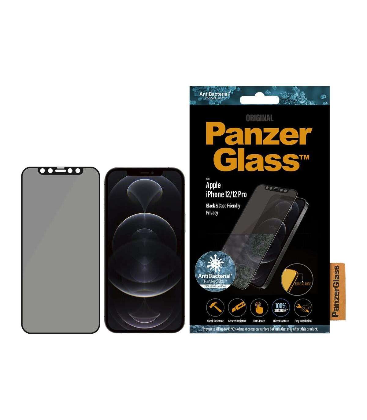 PanzerGlass Apple For iPhone 12/12 Pro Glass Black Case Friendly Privacy glass
