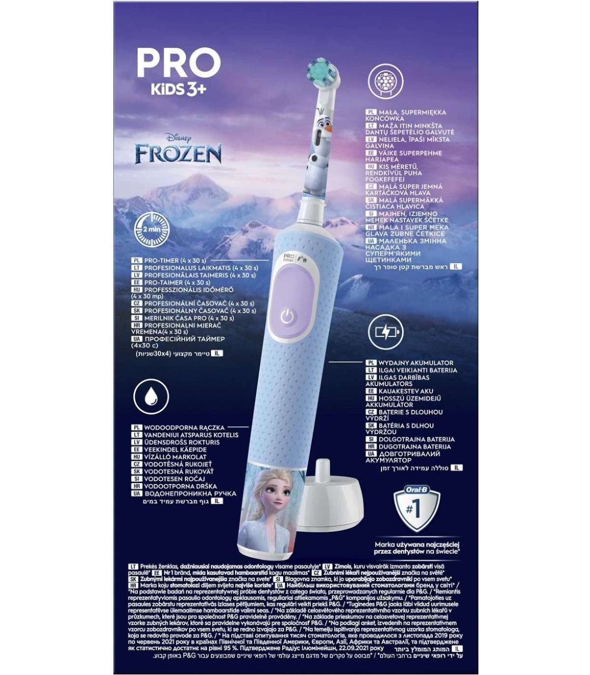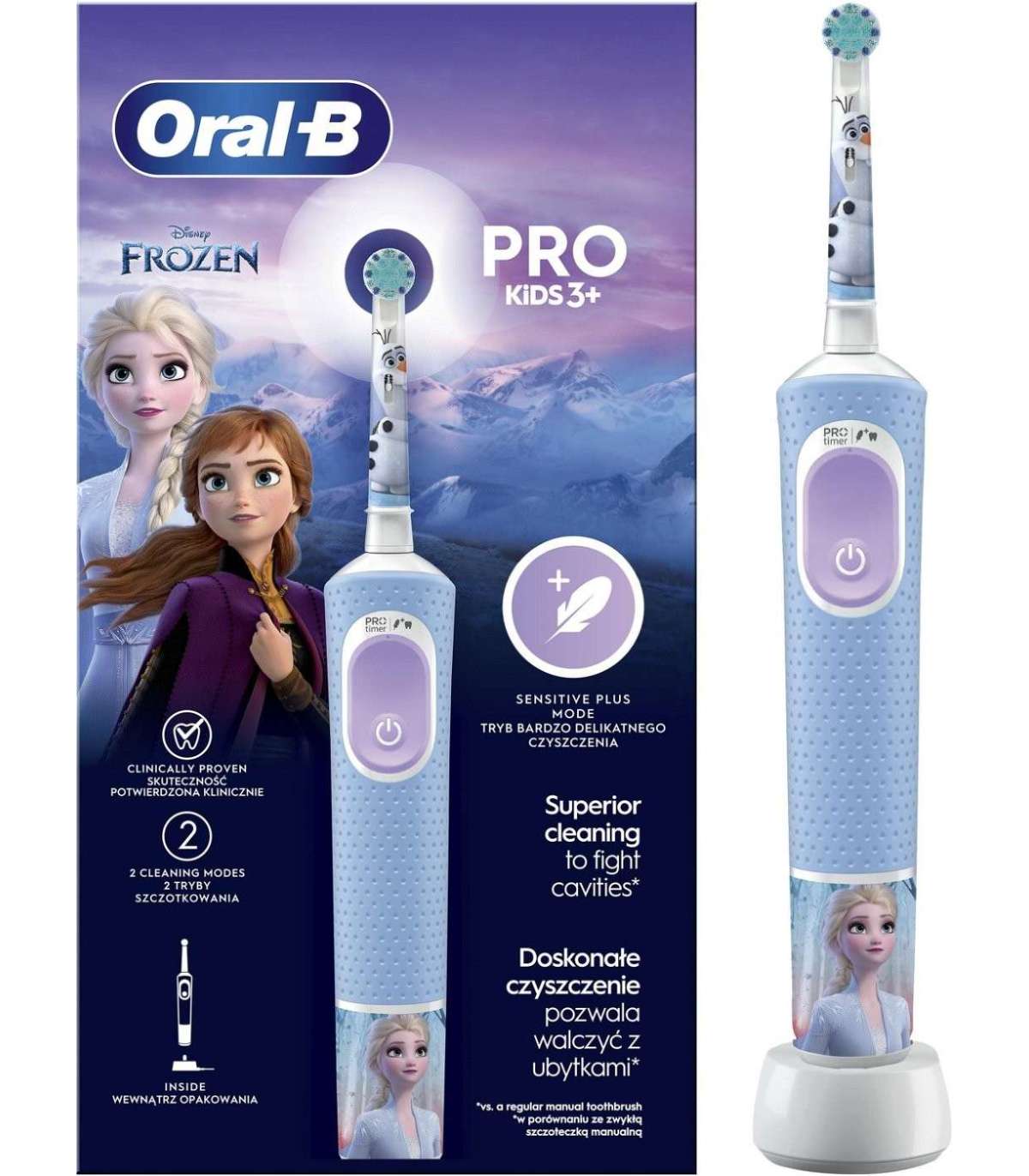 Oral-B | Electric Toothbrush | Vitality PRO Kids Frozen | Rechargeable | For children | Number of brush heads included 1 | Number of teeth brushing modes 2 | Blue